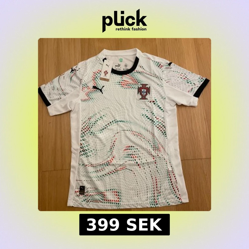 Portugal fotbollströja från Puma i vitt med coola prickmönster i grönt och rött. Tröjan har svart krage och svarta detaljer vid ärmslut. Tillverkad i lätt och ventilerande Re:Fibre-material, perfekt för match eller träning. Officiell partner-logga på bröstet.