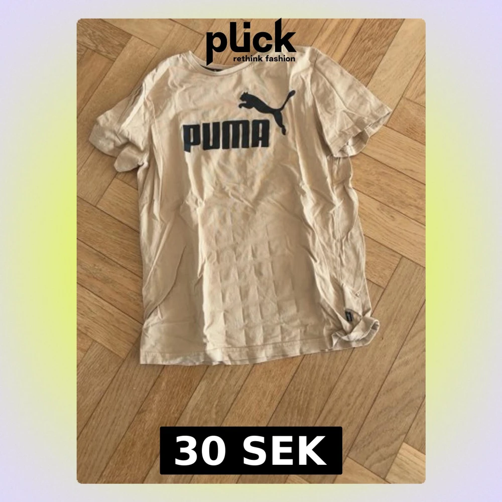 Snygg beige t-shirt från Puma med stor svart logga och text på bröstet. Klassisk rund halsringning och korta ärmar. Perfekt till jeans eller shorts för en avslappnad look.