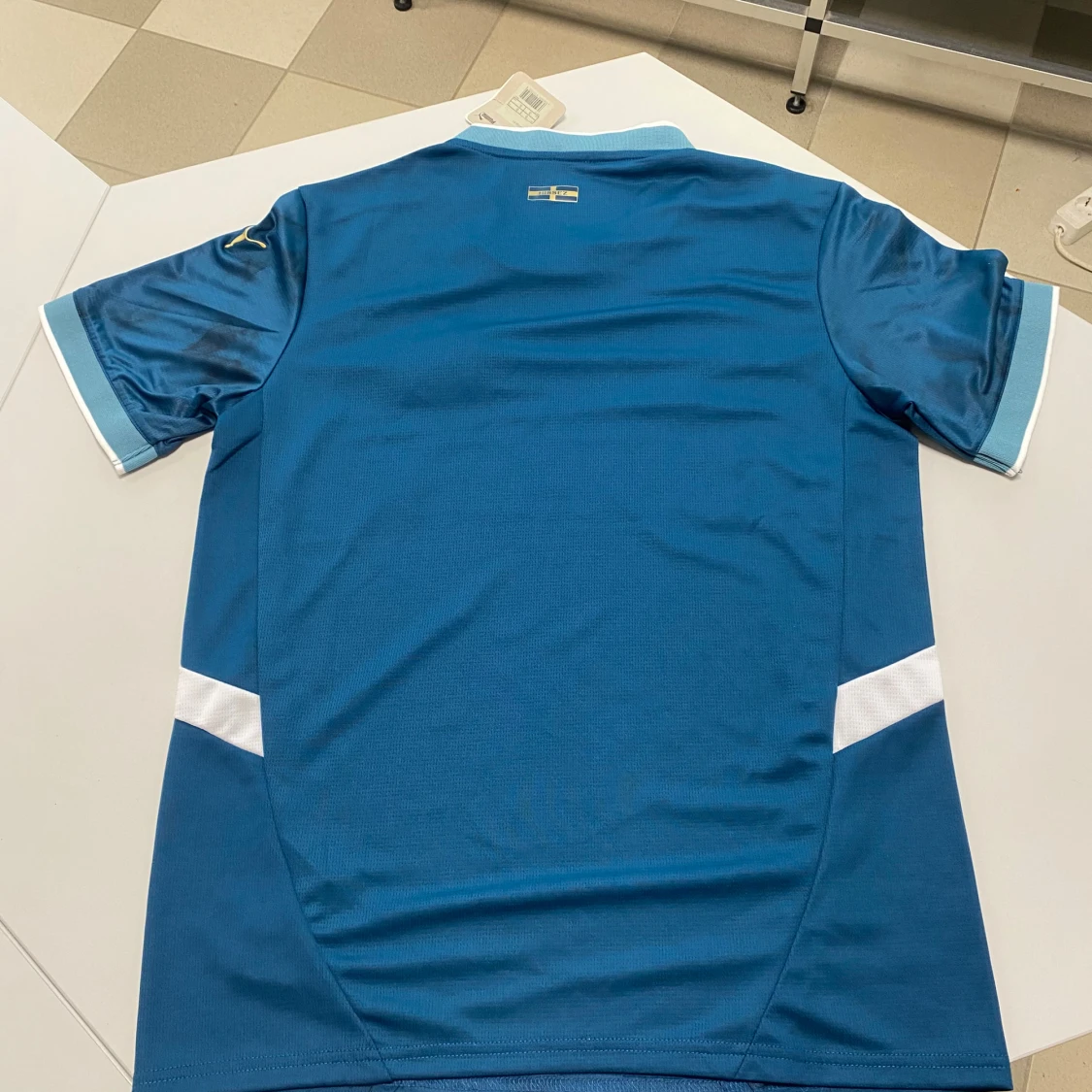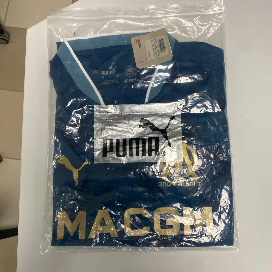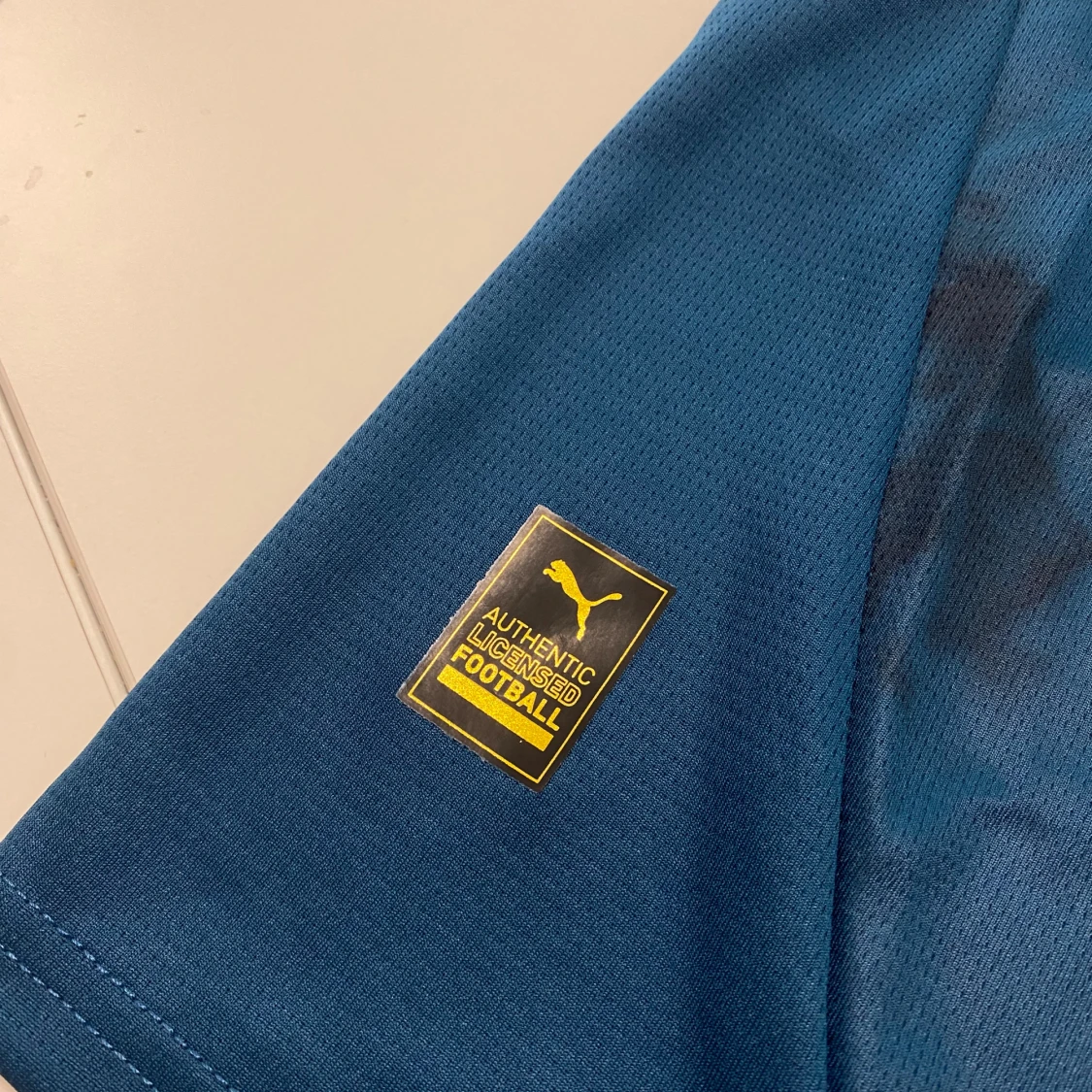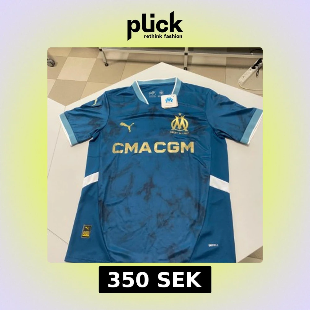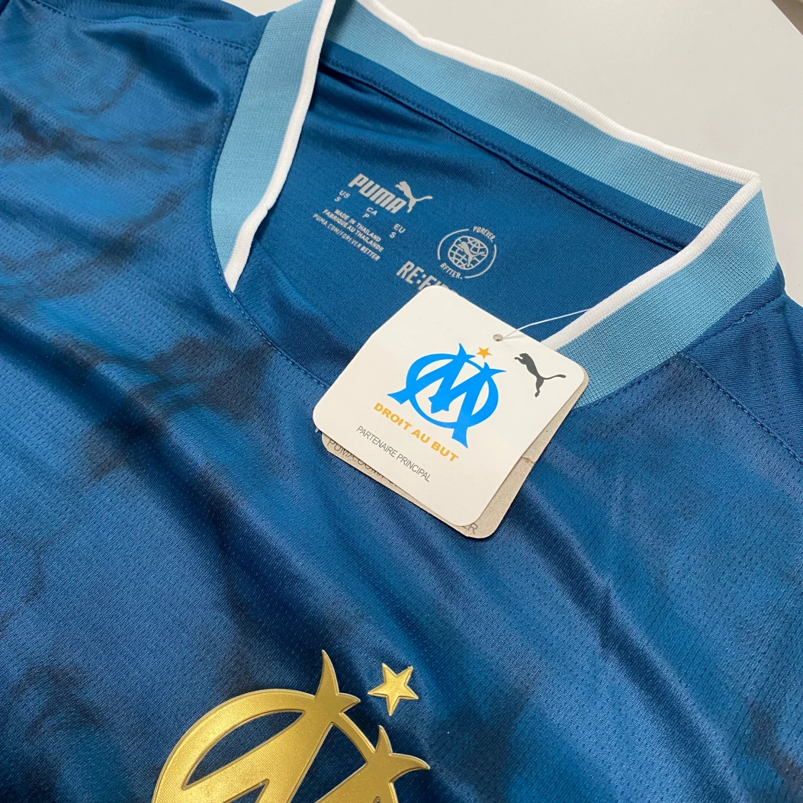 Säljer en officiell Olympique de Marseille fotbollströja från Puma. Tröjan är blå med guldiga detaljer och klubbmärke, korta ärmar och vit accent vid ärmslut och sidor. Tillverkad i lätt och ventilerande polyester med DryCell-teknologi.