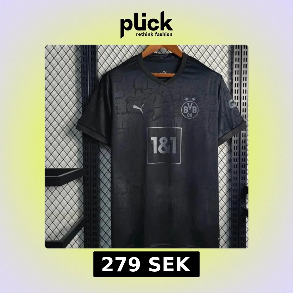 Snygg svart Borussia Dortmund fotbollströja från Puma med subtilt mönster och klubbens logga på bröstet. Tröjan har korta ärmar, V-ringning och 1&1 sponsortryck framtill. Perfekt för dig som vill ha en stilren och modern look på läktaren eller träningen. Finns i alla storlekar!!!!!!!