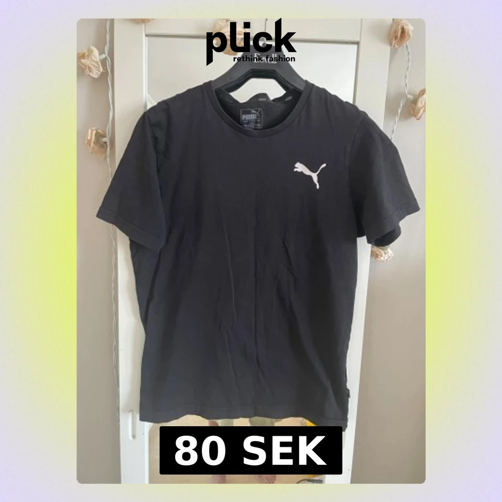 En svart t-shirt från Puma med klassisk vit logga på bröstet. T-shirten har rund halsringning och korta ärmar. Perfekt för en sportig och avslappnad stil. Tillverkad i mjuk bomull för skön komfort.