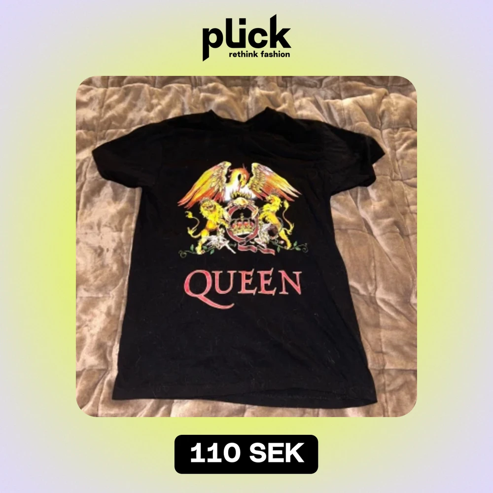 jätte snygg queen t shirt jag fick i julklapp för några år sedan, har blivit använd ett antal gånger och lite små fläckar på, annars inga mer defekter!