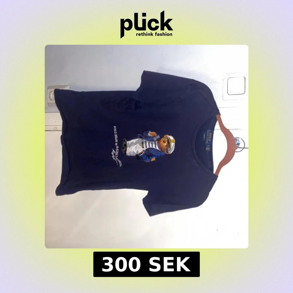 Mörkblå t-shirt från Ralph Lauren med ikoniska Polo Bear-trycket på bröstet. Klassisk rund hals och korta ärmar. Tillverkad i mjuk bomull för skön känsla. Perfekt för dig som gillar stilrena plagg med en twist. Passar ca 150-160 cm
