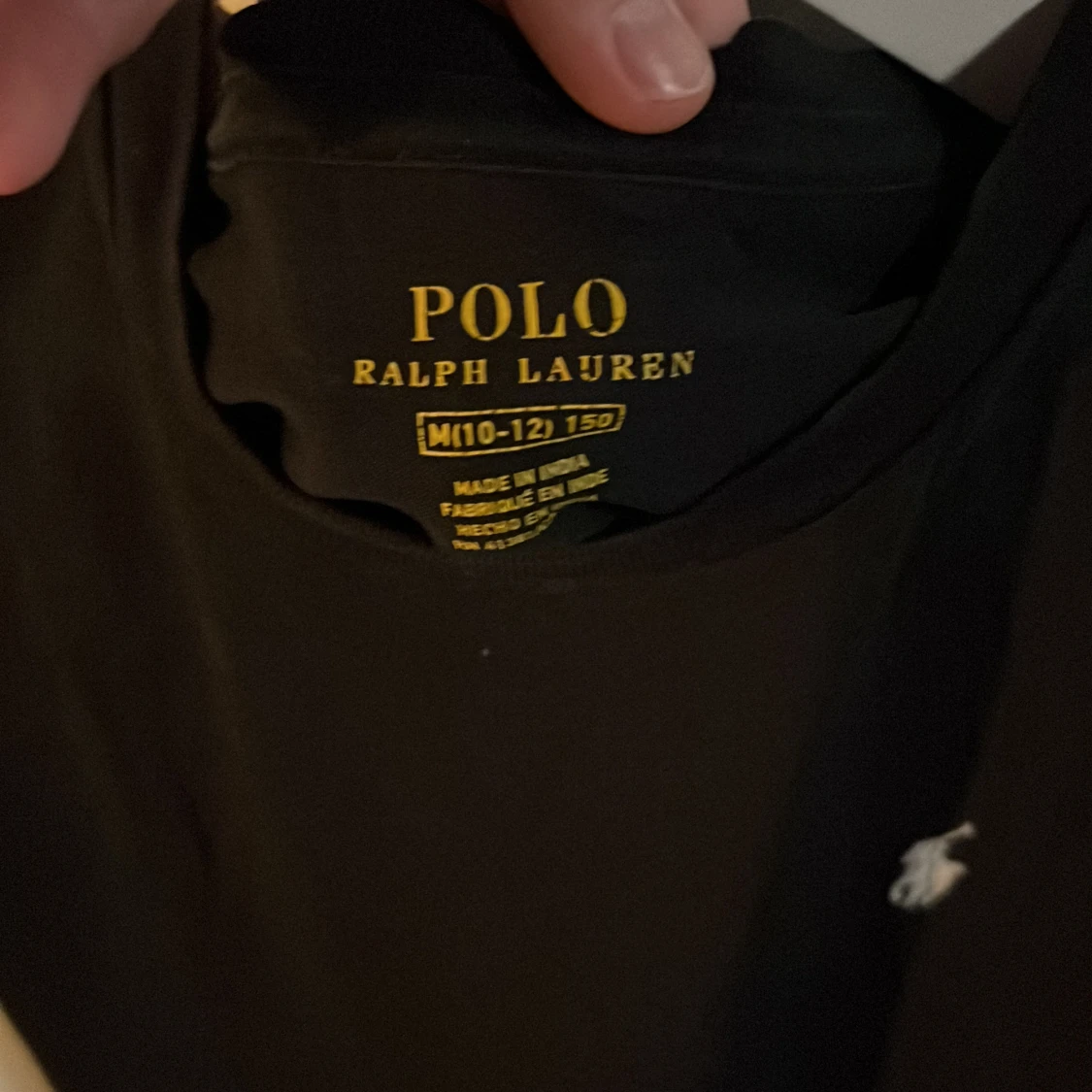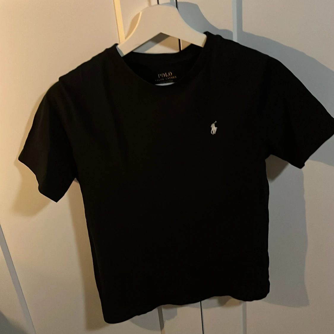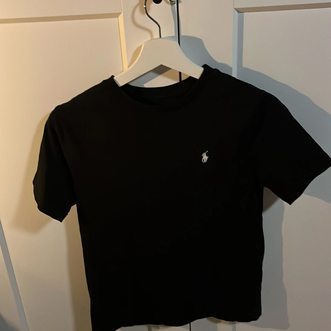 Säljer en klassisk svart t-shirt från Polo Ralph Lauren med det ikoniska broderade logotypen på bröstet. Perfekt för en stilren look. T-shirten är kortärmad och gjord i mjukt material.