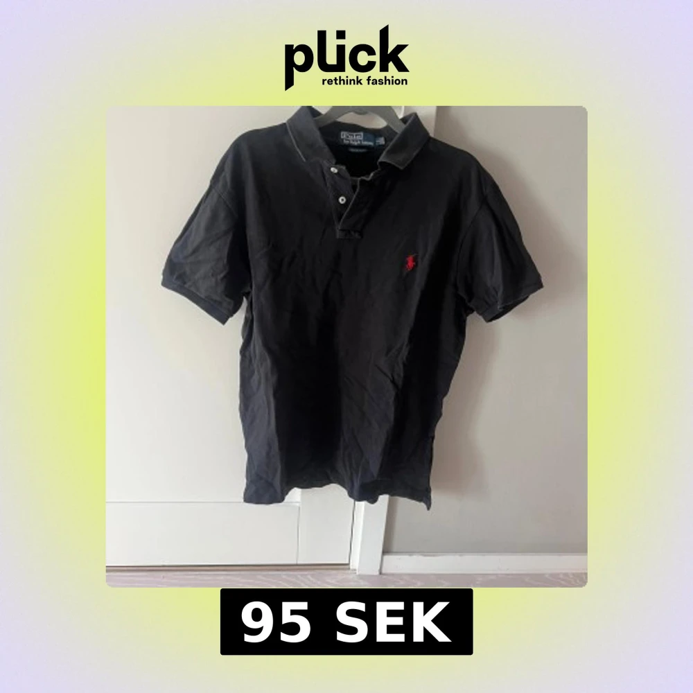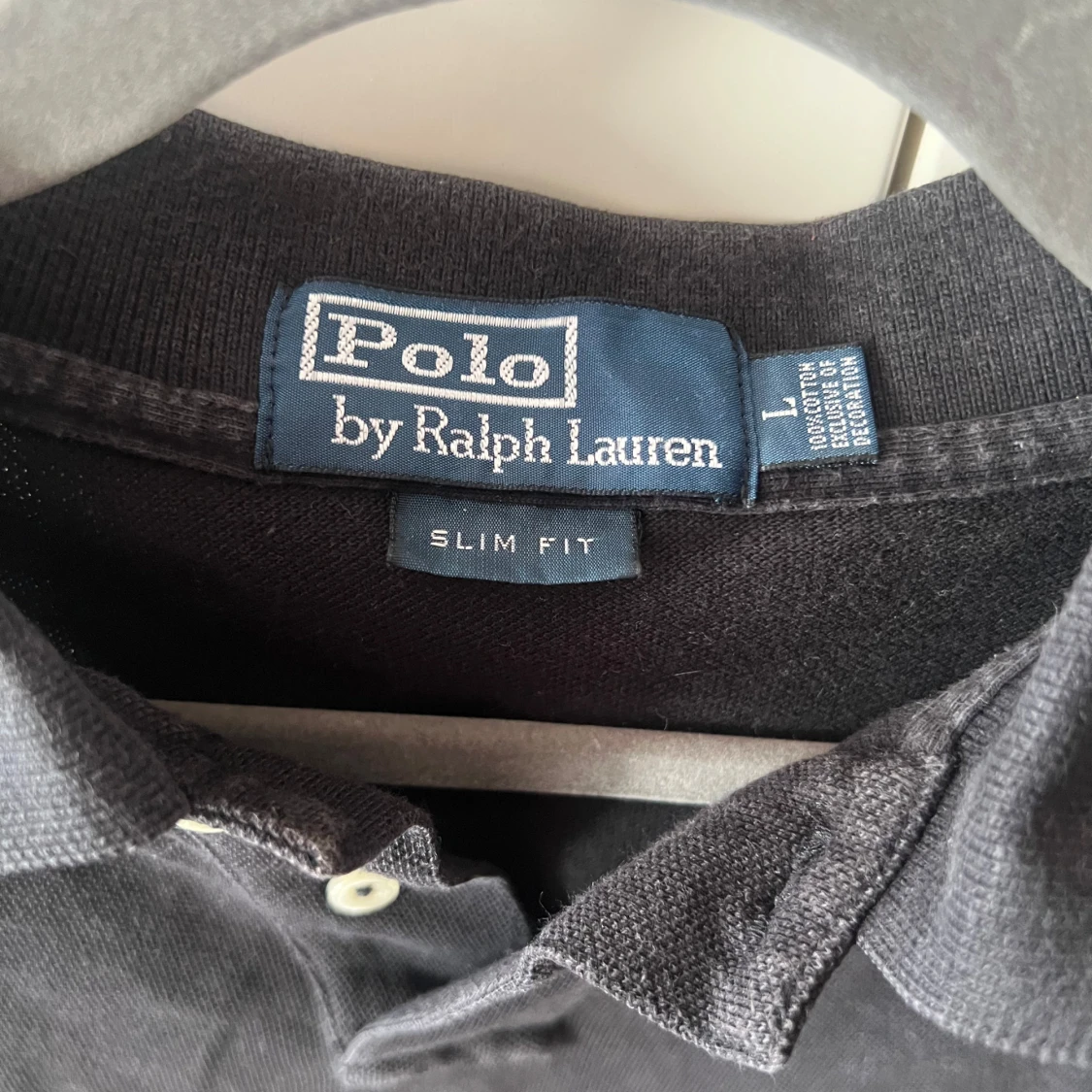Klassisk svart pikétröja från Polo Ralph Lauren med röd broderad logga på bröstet. Slim fit-modell med korta ärmar och två knappar vid kragen. Perfekt för en stilren och tidlös look.