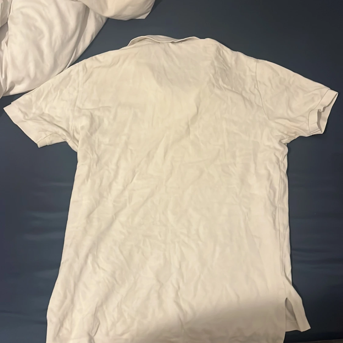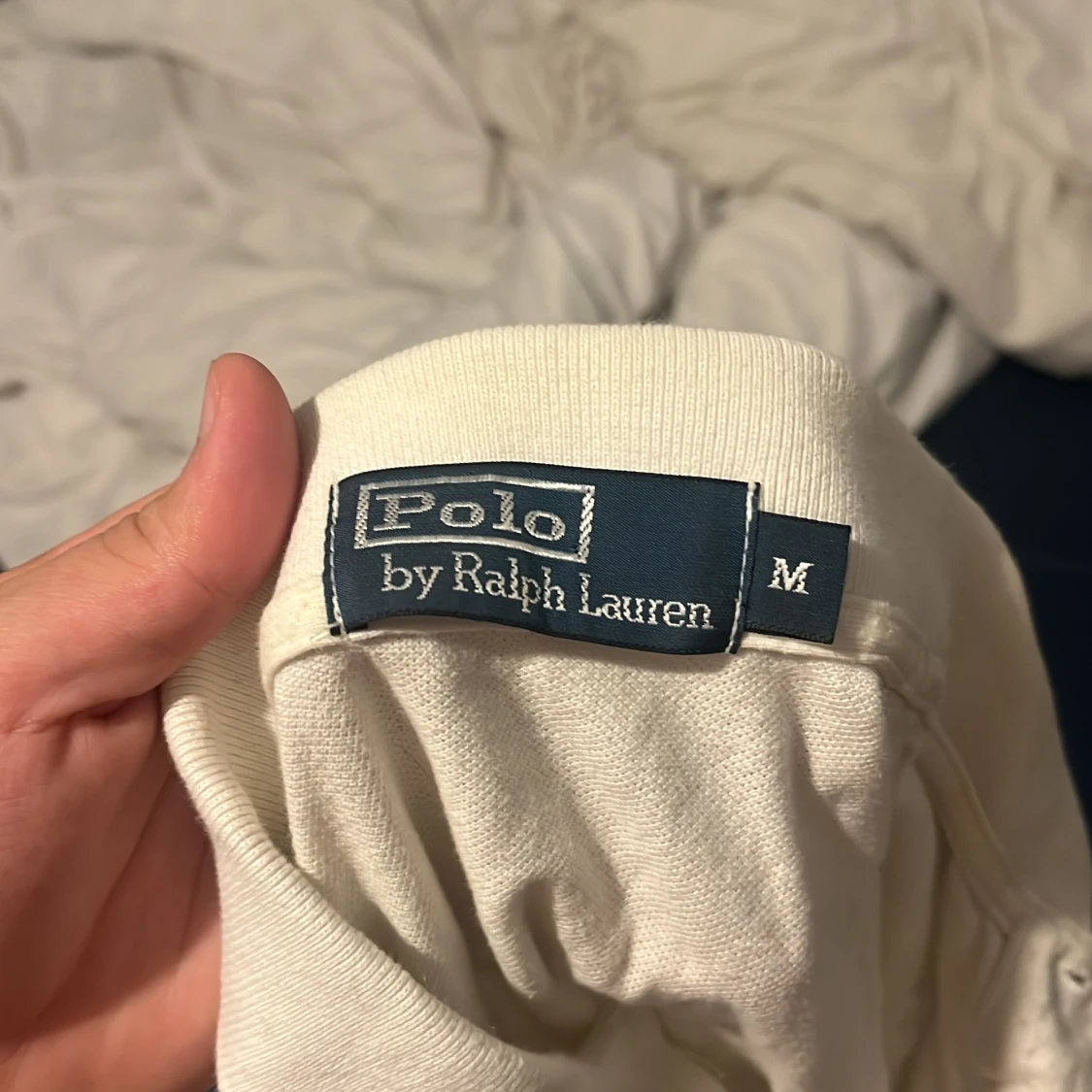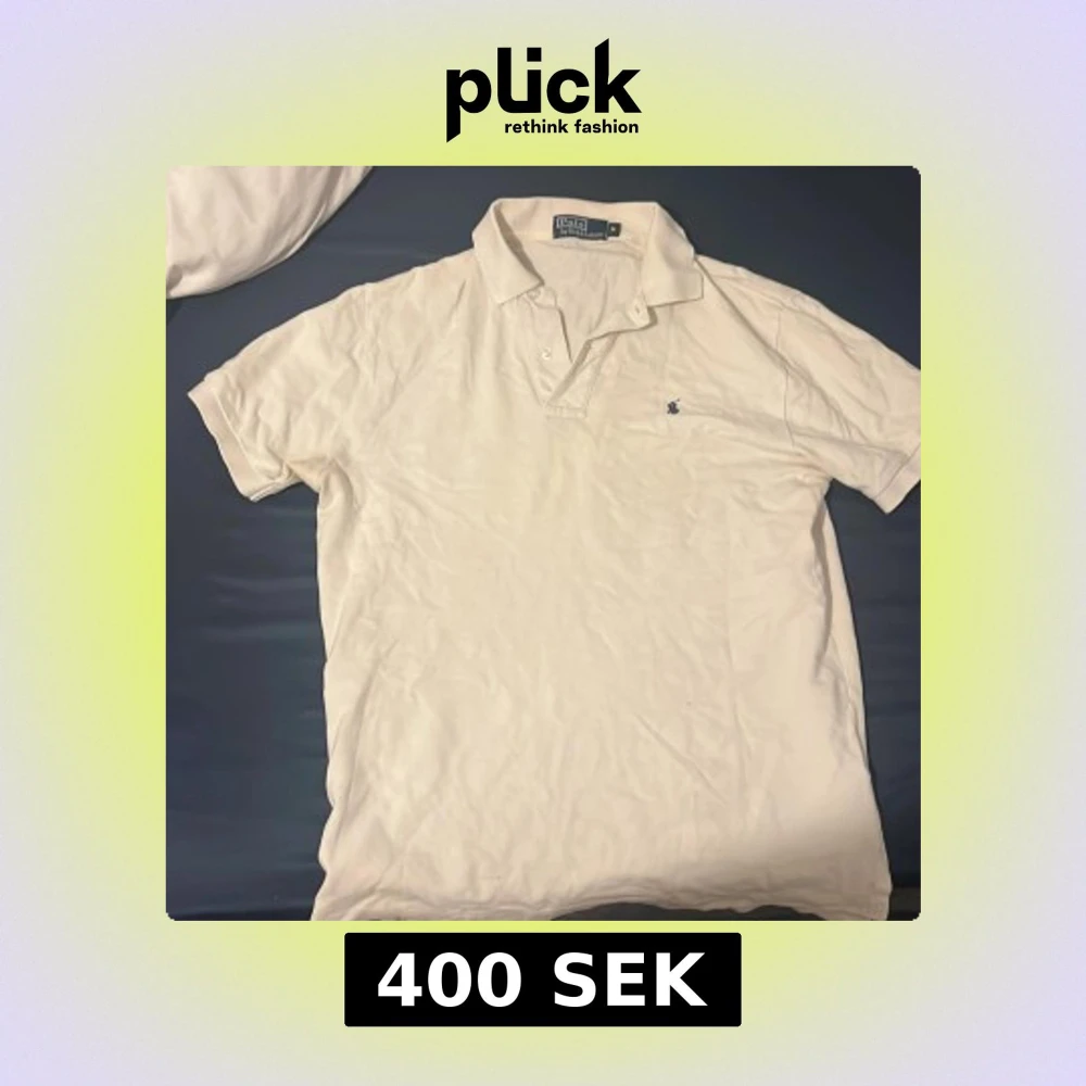 Klassisk vit pikétröja från Polo Ralph Lauren med liten broderad logga på bröstet. Tröjan har krage och knappar vid halsen, perfekt för en clean och stilren look.
