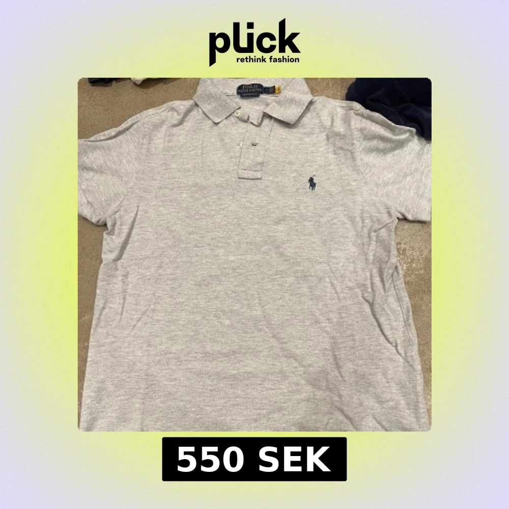 Säljer en stilren grå pikétröja från Ralph Lauren med broderad logga på bröstet. Tröjan har korta ärmar och en klassisk krage med knappar. Perfekt för en avslappnad men ändå snygg look.