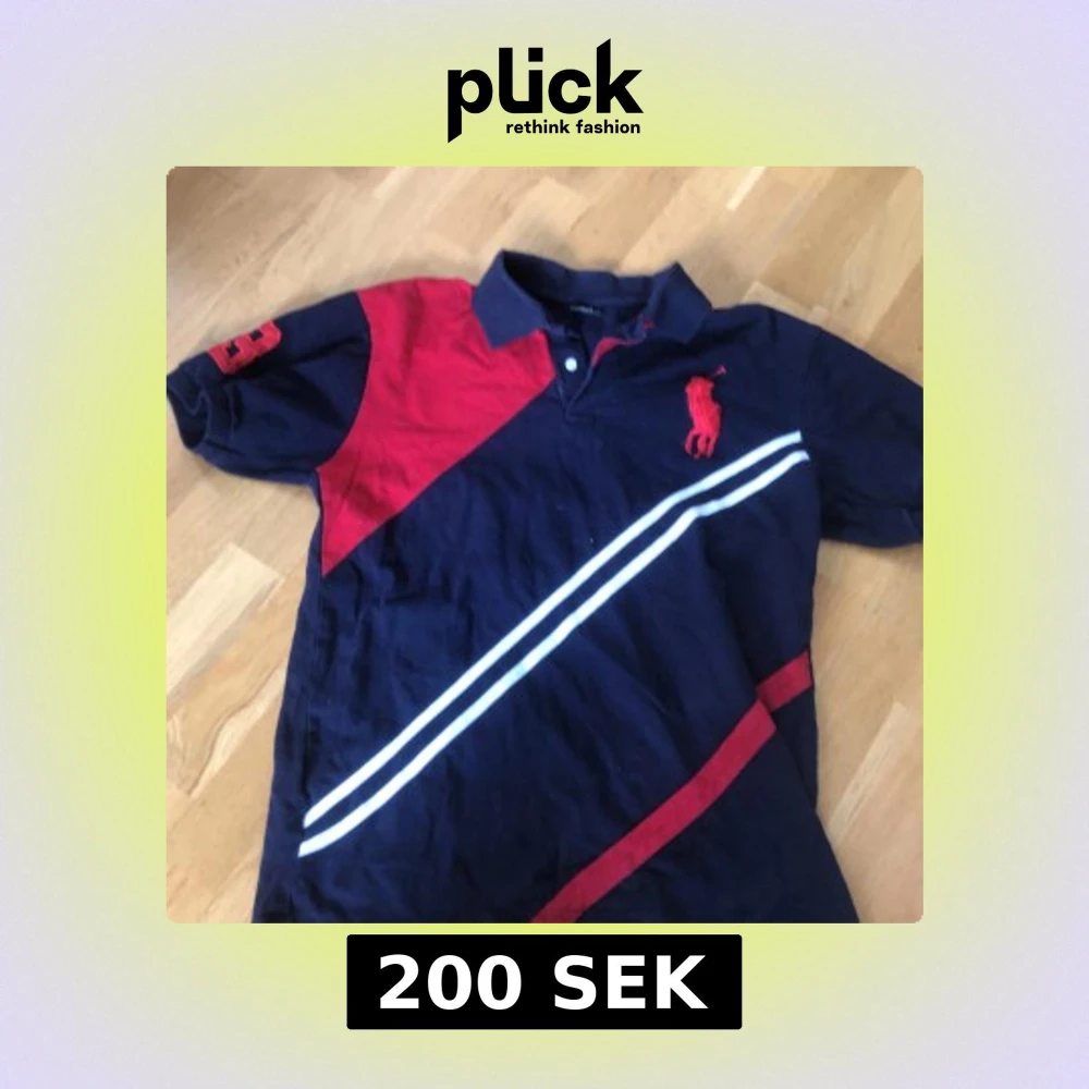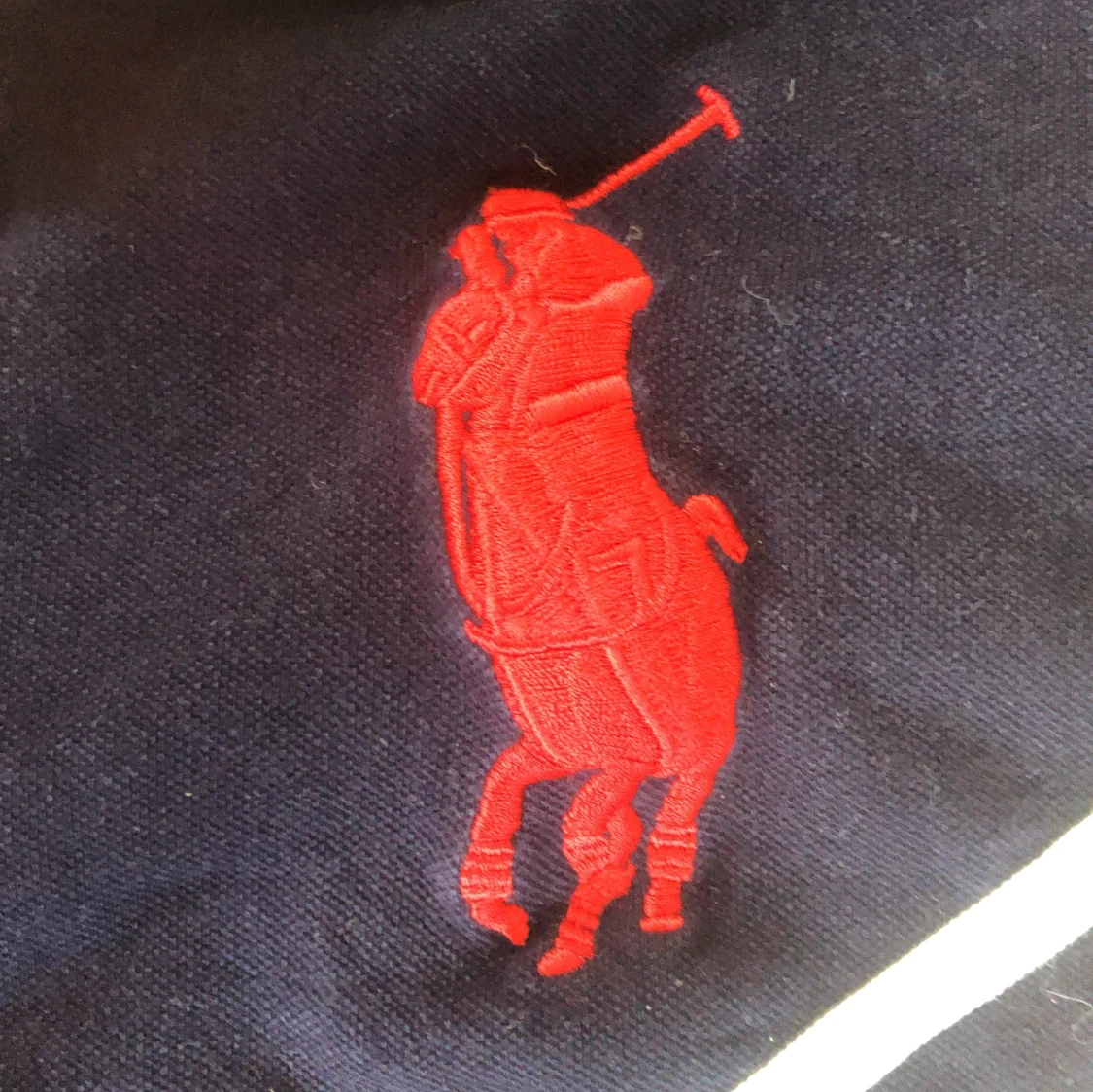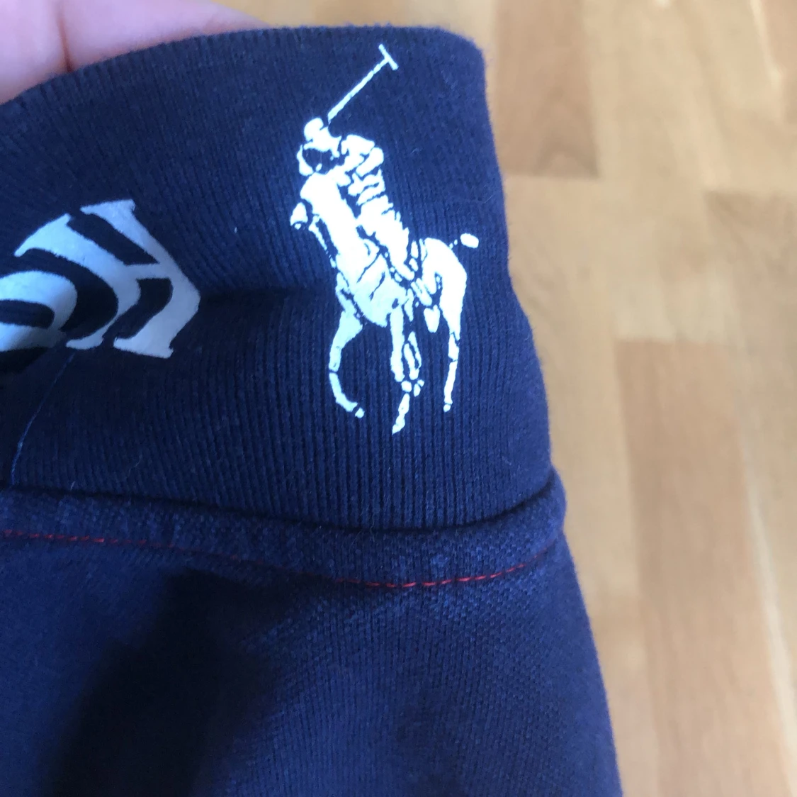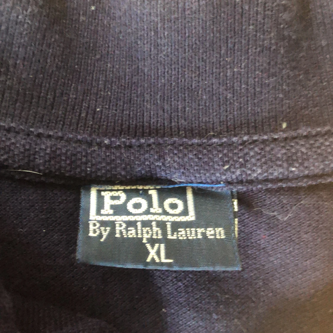Säljer en mörkblå pikétröja från Polo Ralph Lauren i storlek XL. Tröjan har röda och vita detaljer, broderad logga på bröstet och tryck på ärmen. Klassisk krage och korta ärmar. Perfekt för en sportig och stilren look.