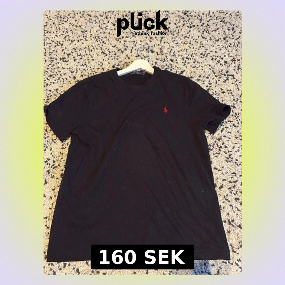 Klassisk svart t-shirt från Polo Ralph Lauren med röd broderad logga på bröstet. T-shirten har rund halsringning och korta ärmar. Tillverkad i mjuk bomull för skön känsla och enkel stil. Tröjan är för tillfället lite hårig men det fixar jag vid köp så blir den som ny