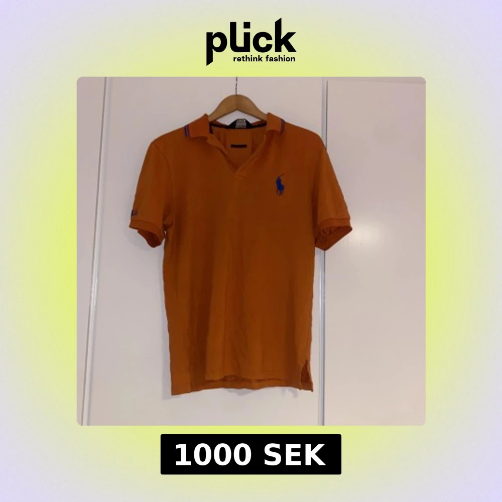 Snygg orange pikétröja från Polo Ralph Lauren med blå logga på bröstet och diskreta ränder på kragen. Tröjan är i bomull och polyester, har korta ärmar och klassisk pikékrage. Perfekt för en sportig och avslappnad stil.