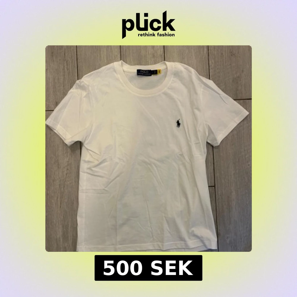 Klassisk vit t-shirt från Polo Ralph Lauren med broderad svart logga på bröstet. T-shirten har rund halsringning och korta ärmar. Tillverkad i mjuk bomull för en skön och stilren look. Jag har sytt ihop lapparna på insidan eftersom de gick av efter jag slet upp tröjan när den var ny😬 men annars är den i nytt skick eftersom jag inte använt den nånting sen jag fick den! Skriv för fler bilder!!