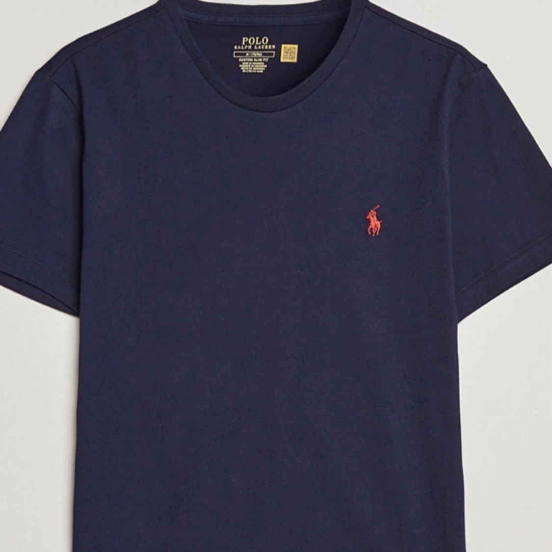 Mörkblå t-shirt från Polo Ralph Lauren med klassisk passform och röd broderad logga på bröstet. Tillverkad i mjuk bomull och har rund halsringning samt korta ärmar. Perfekt basic-plagg med stilren design. Passar både män och kvinnor
