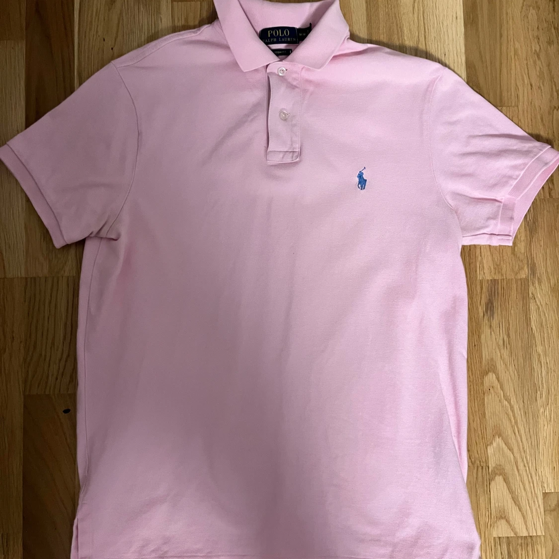 Snygg rosa pikétröja från Polo Ralph Lauren med klassisk krage och knappar. Den har en broderad blå logga på bröstet. Perfekt för en stilren look.