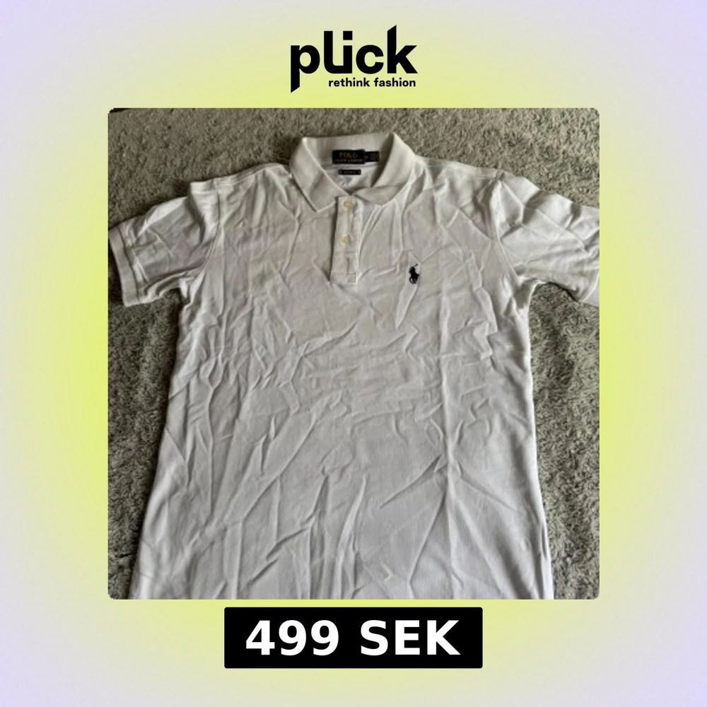 Vit Polo Ralph Lauren pikétröja, storlek M. (Behöver strykas lite)