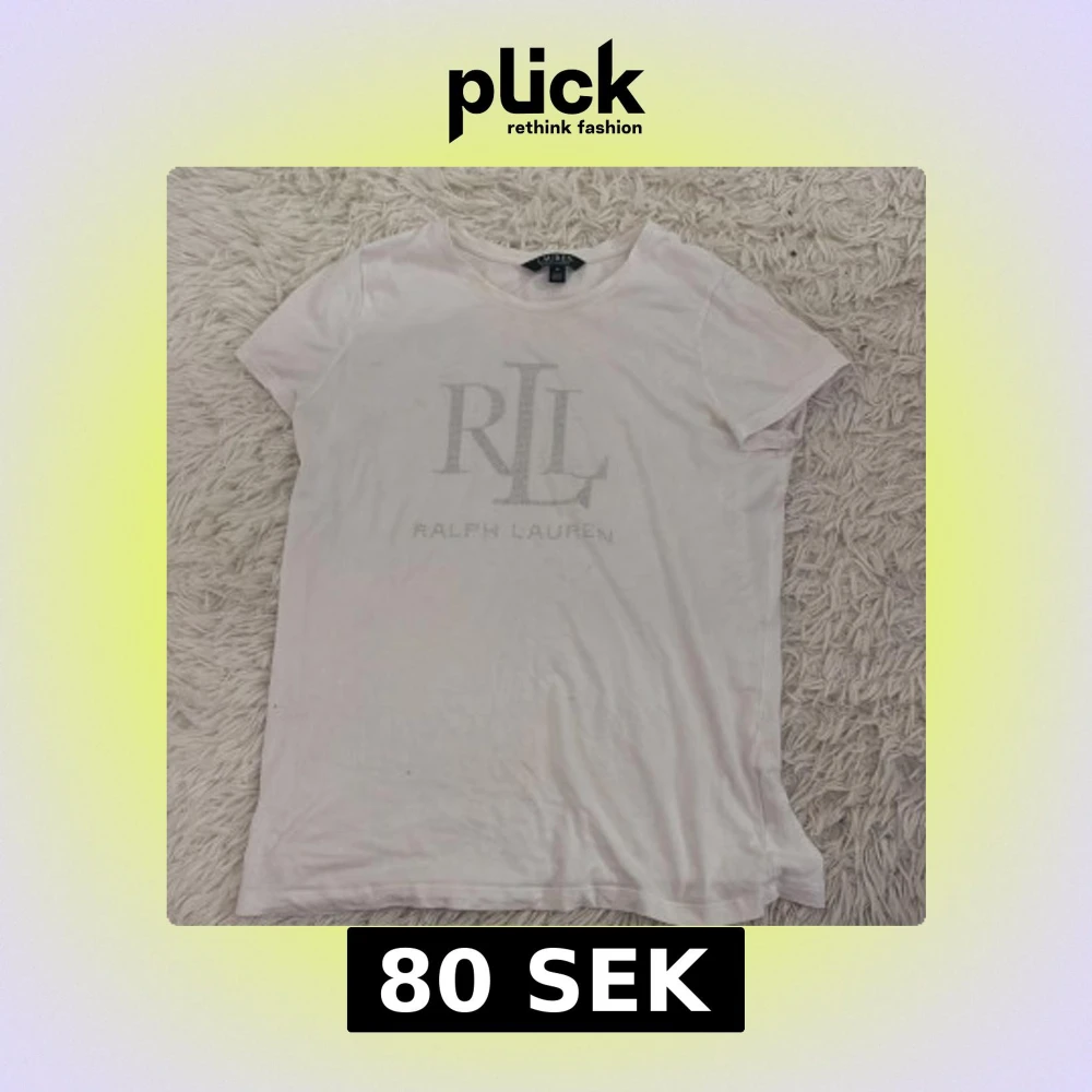 Säljer en klassisk vit t-shirt från Ralph Lauren med RLL-logga på framsidan. T-shirten har korta ärmar och är perfekt för en avslappnad stil. Passar bra till jeans eller shorts.