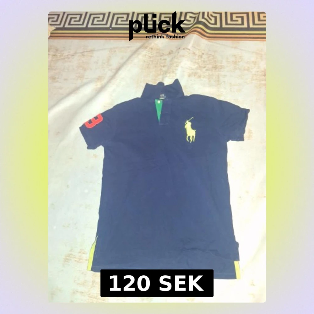Snygg mörkblå t-shirt från Polo Ralph Lauren med klassisk polokrage och gul logga på bröstet. Röd siffra 3 på ärmen och gröna samt gula detaljer vid kragen. Custom fit-modell i mjuk bomull, perfekt för dig som gillar sportig och stilren look.