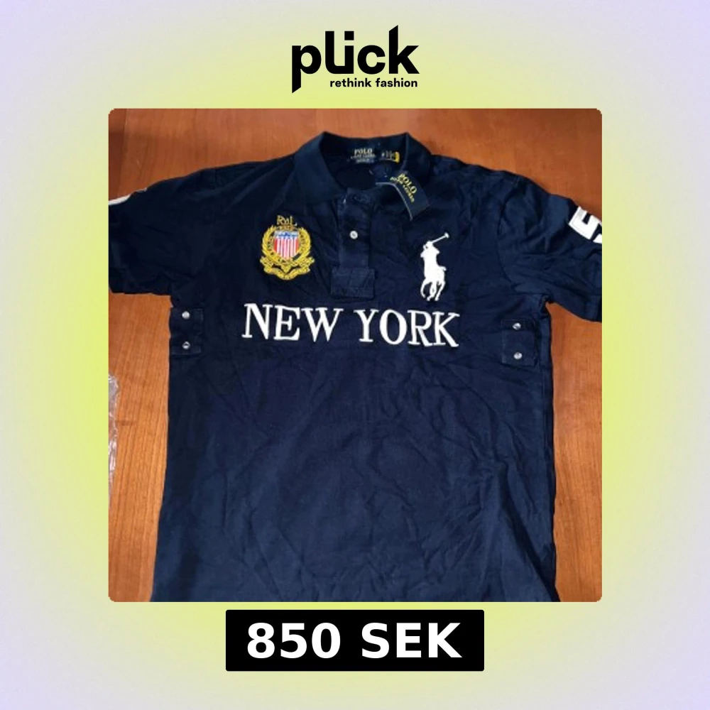 Snygg mörkblå t-shirt från Polo Ralph Lauren med broderad logga och New York på bröstet. Klassisk pikékrage. detaljerade broderier. Helt ny alldig använd. Har test den en gång men den var för stor för mig. Pris kan diskuteras (k@pia)
