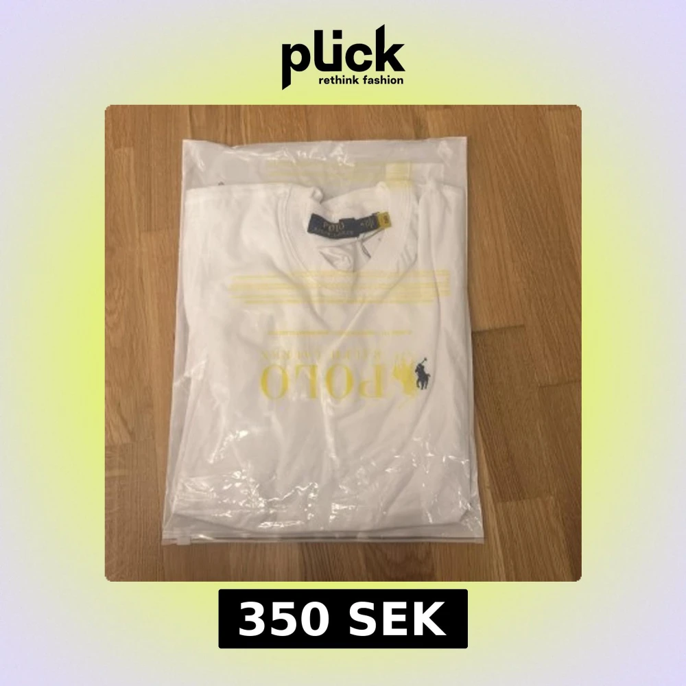 Vit t-shirt från Polo Ralph Lauren med gul logga och tryck framtill. Klassisk rund halsringning och korta ärmar. Perfekt för en clean och stilren look.