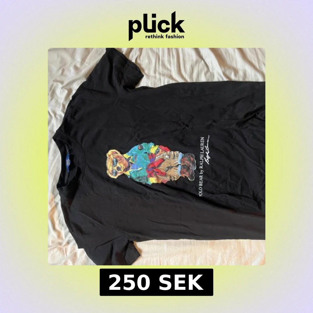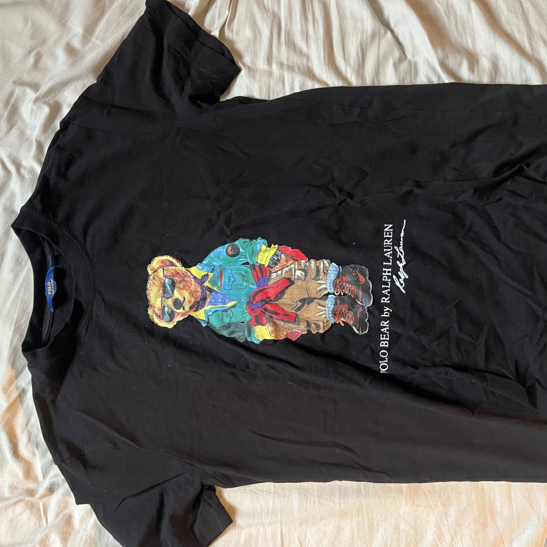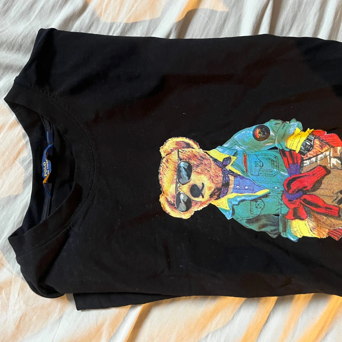 Svart t-shirt från Ralph Lauren med ikoniskt Polo Bear-tryck på bröstet. Klassisk rund hals och korta ärmar. Skön bomullskvalitet och snygg streetstil med färgglad björn i cool outfit framtill.
