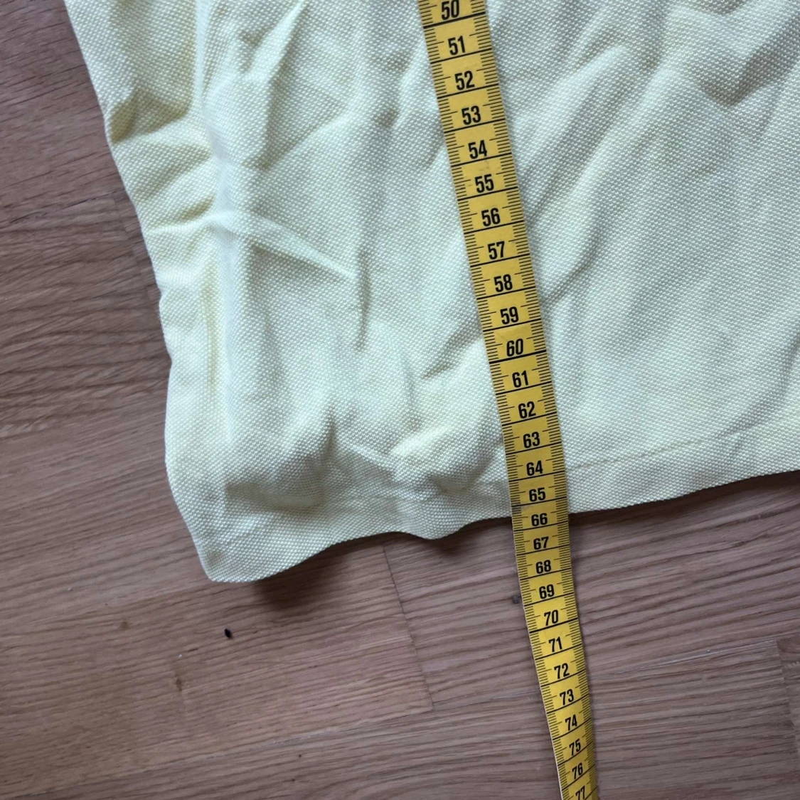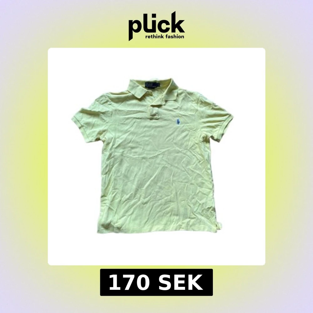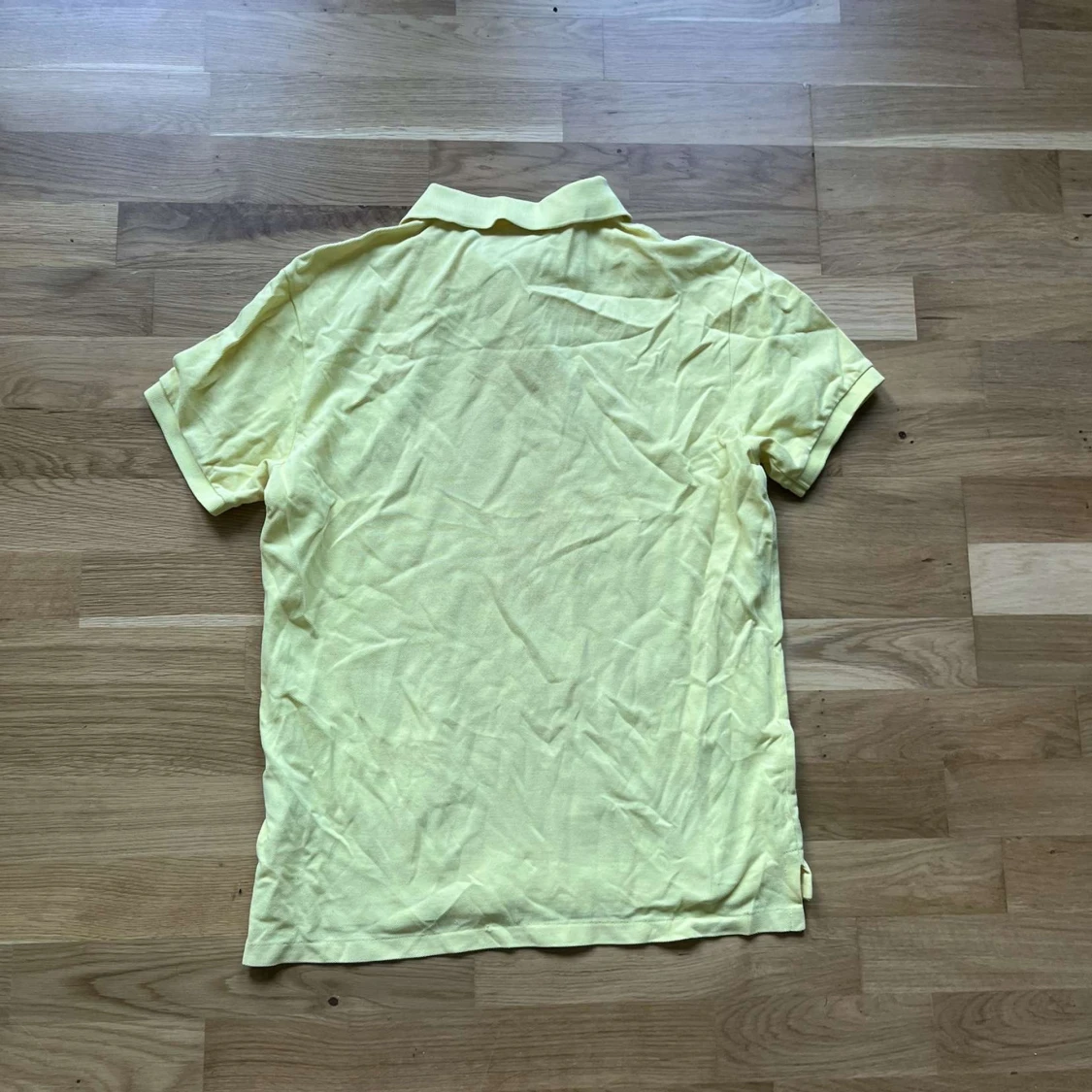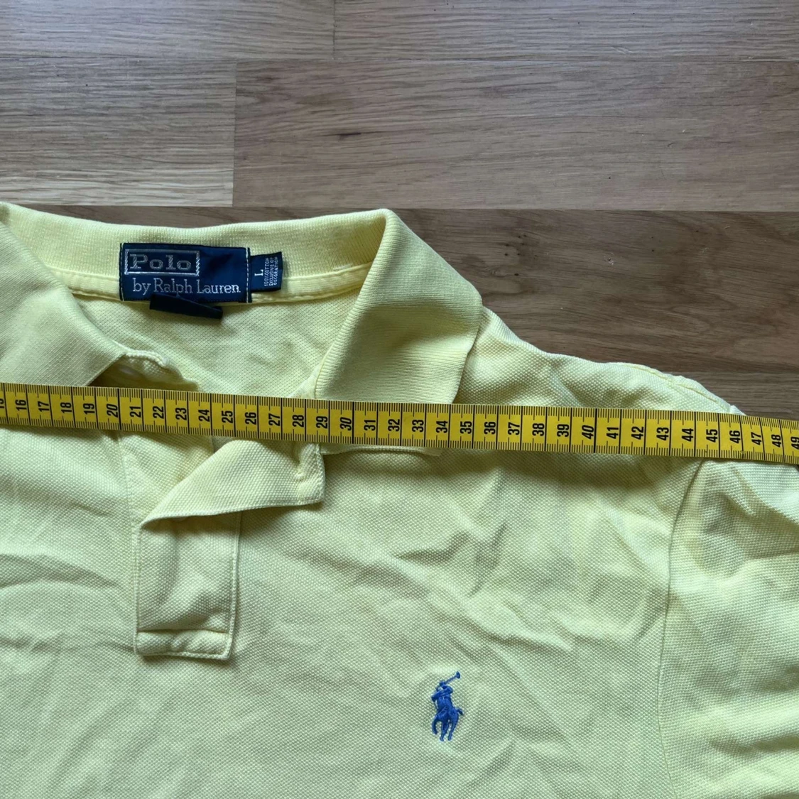 Snygg gul pikétröja från Ralph Lauren med klassisk krage och korta ärmar. Tröjan har blå broderad logga på bröstet och är gjord i mjuk bomull. Perfekt för en fräsch och avslappnad stil under varmare dagar. Se en liten defekt på sista bilden ! Jag skickar ej bild när jag bär plaggen och jag vet ej vilken längd och vikt de passar då jag inte prövar kläderna jag säljer 😃