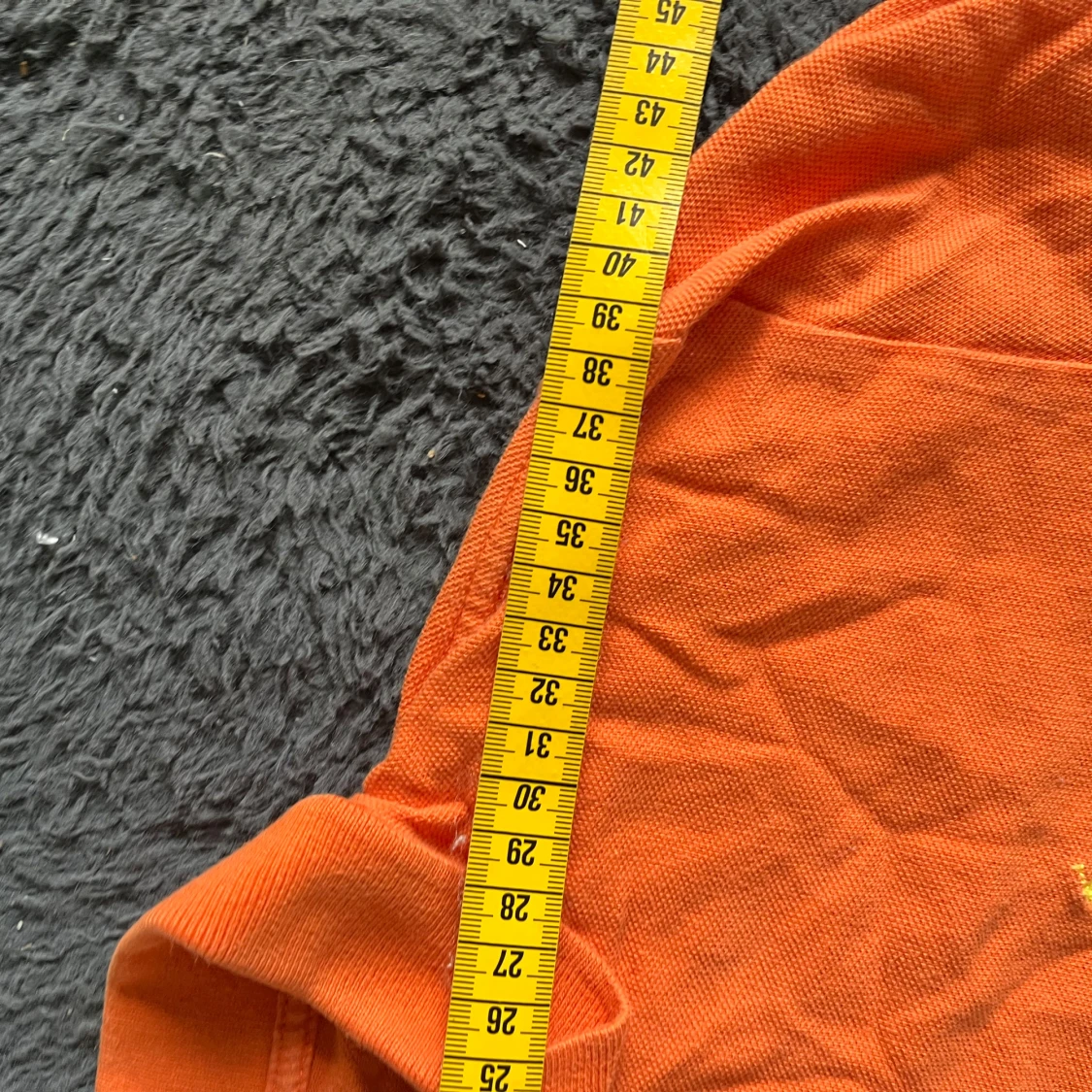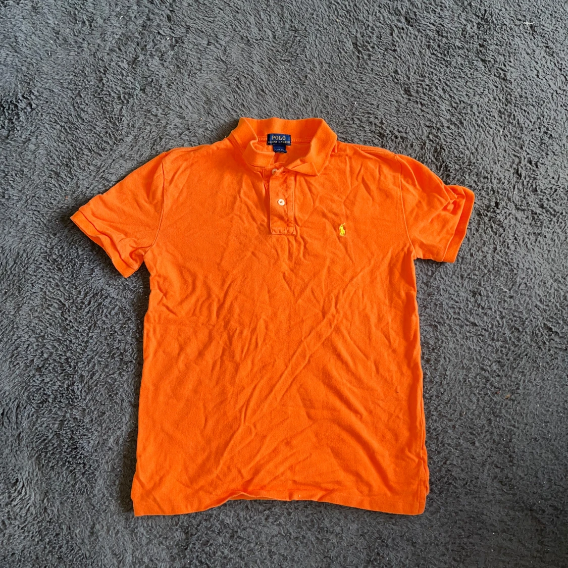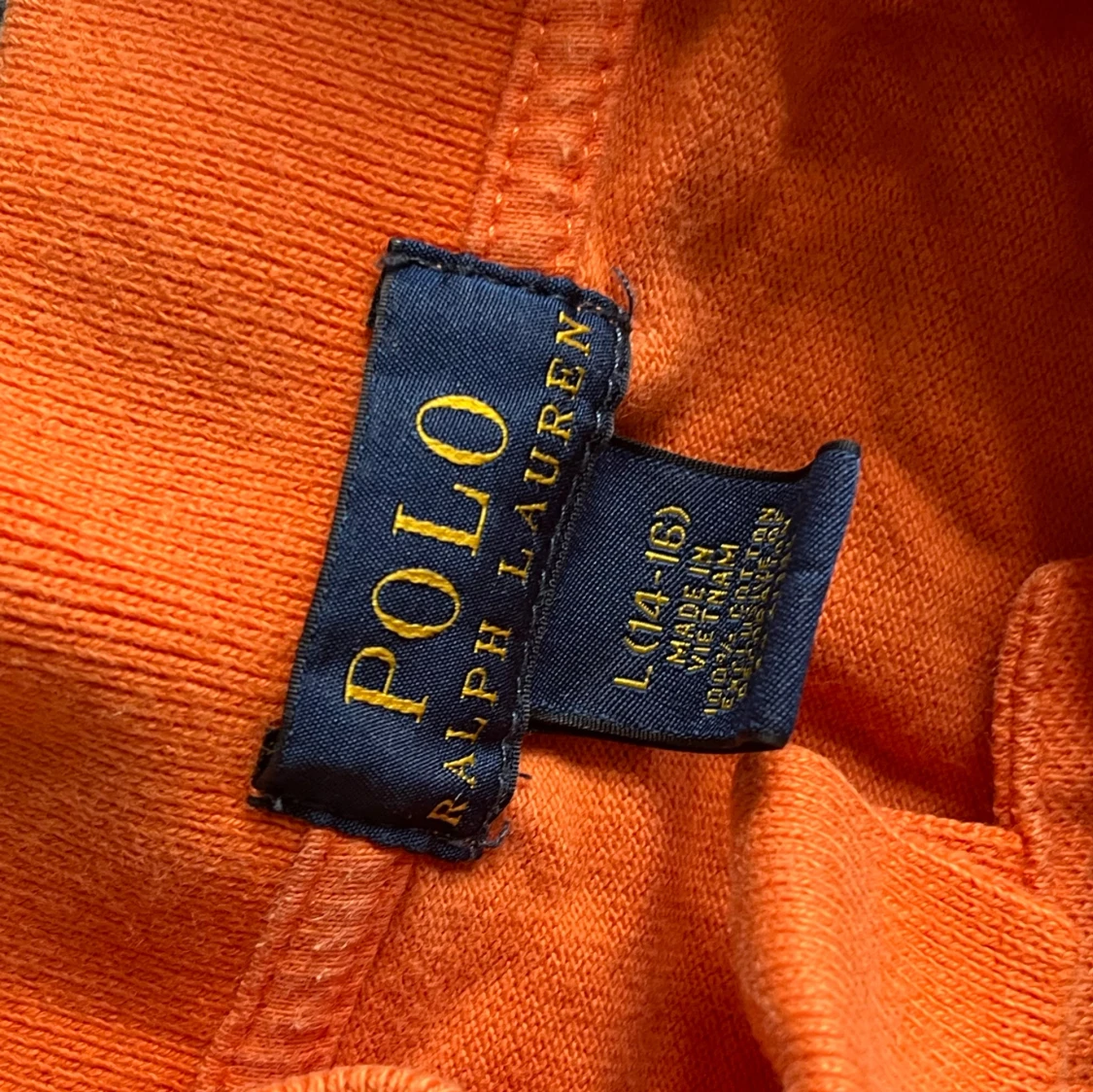 Säljer en fräsch orange pikétröja från Polo Ralph Lauren med klassisk krage och två knappar framtill. Tröjan har korta ärmar och den ikoniska lilla broderade loggan i gult på bröstet. Materialet är mjuk bomull som andas och passar perfekt till sommaren. Storlek L 14-16 år vilket bör motsvara XS men KOLLA MÅTTEN!