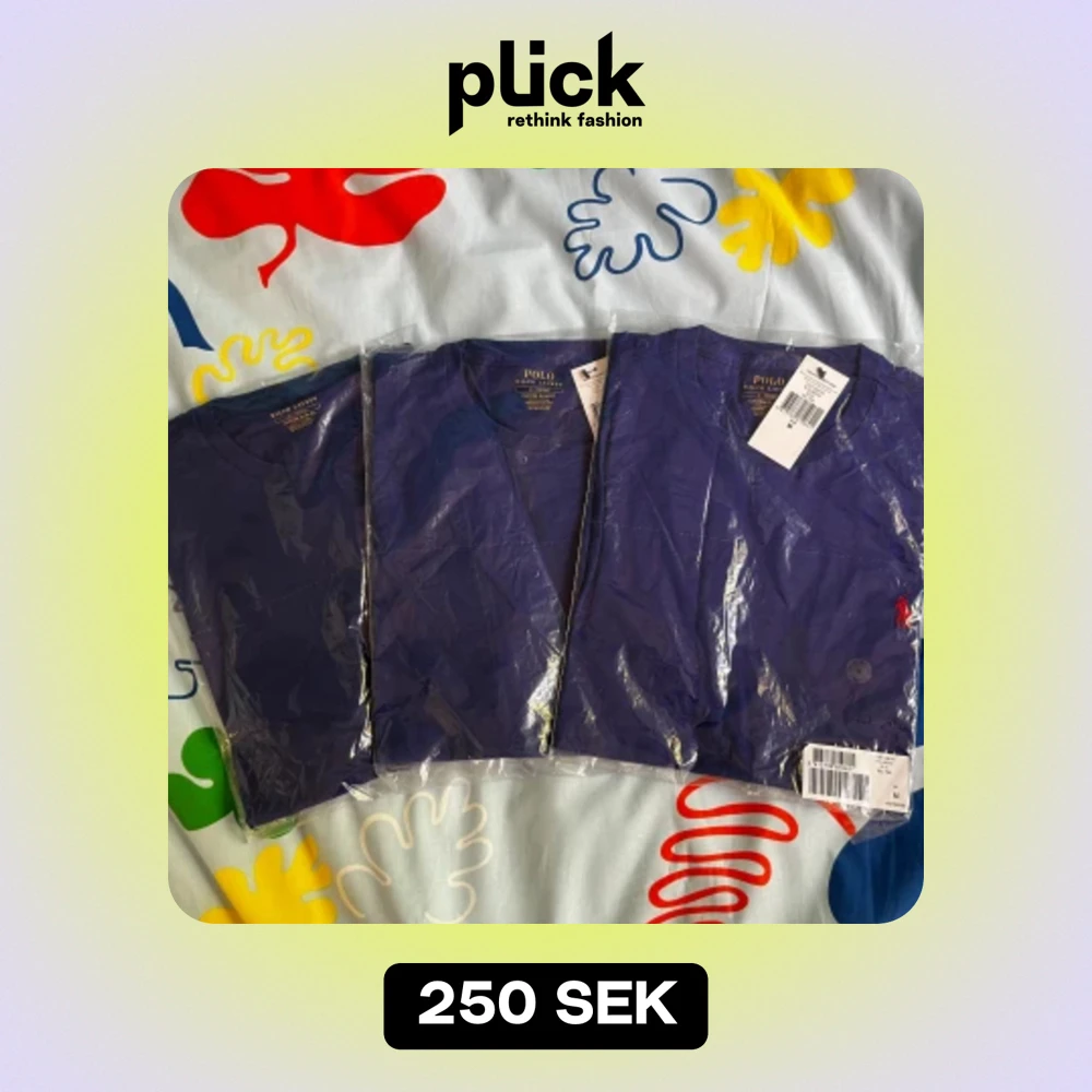 Tre stycken mörkblå Ralph Lauren T-shirts som är i orginalförpackning. Medium som passar på både kvinnor och män. 600 kr för alla tre och 250 kr styck. Pris kan diskuteras💗