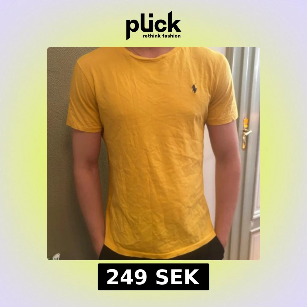 Säljer en snygg gul t-shirt från Ralph Lauren med det klassiska logotypbroderiet på bröstet. T-shirten har en normal passform och korta ärmar, perfekt för en avslappnad stil. Passar utmärkt till både jeans och shorts!