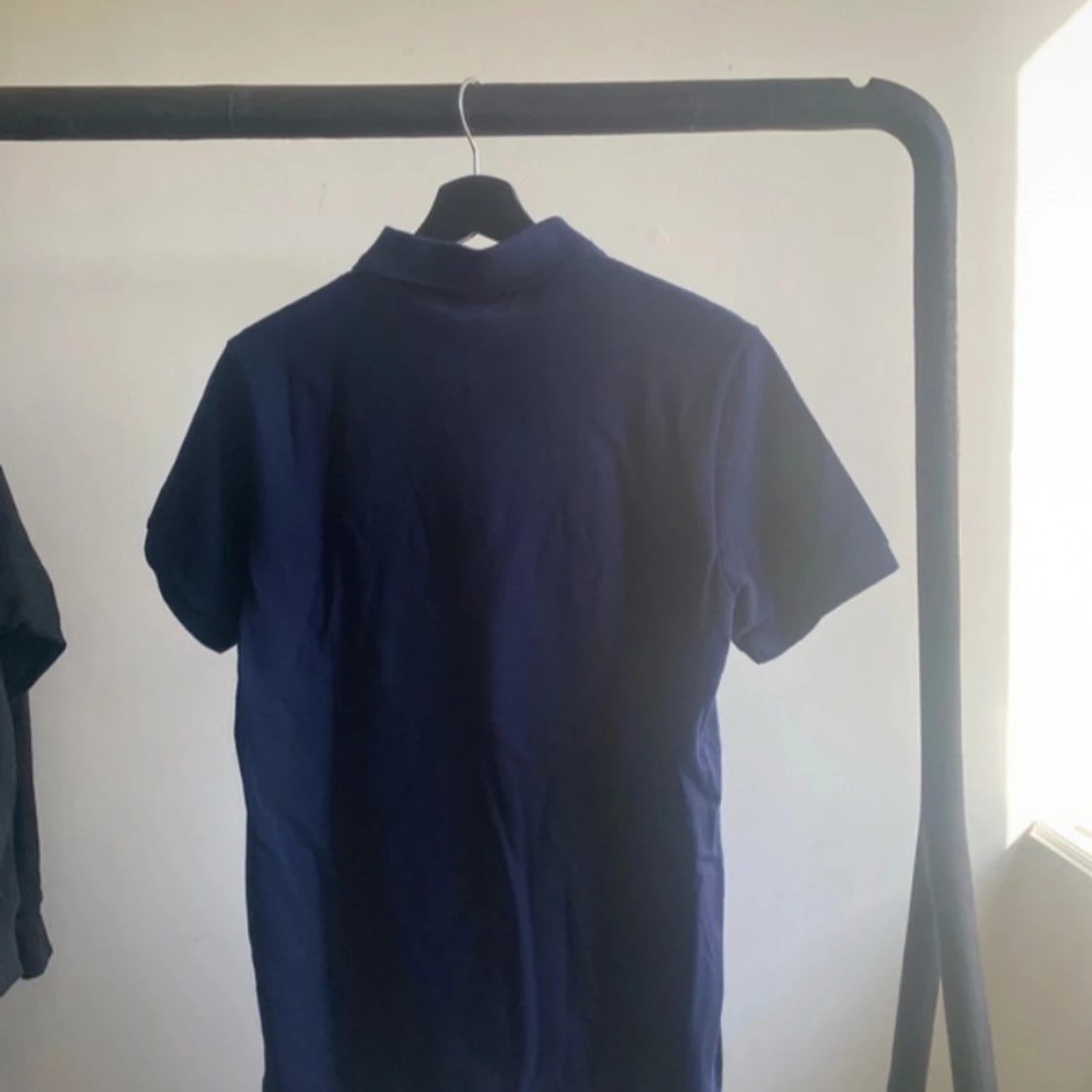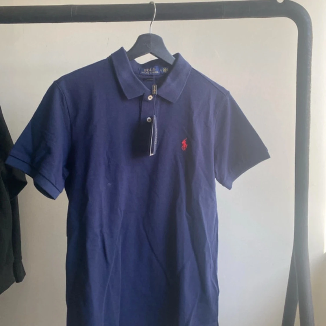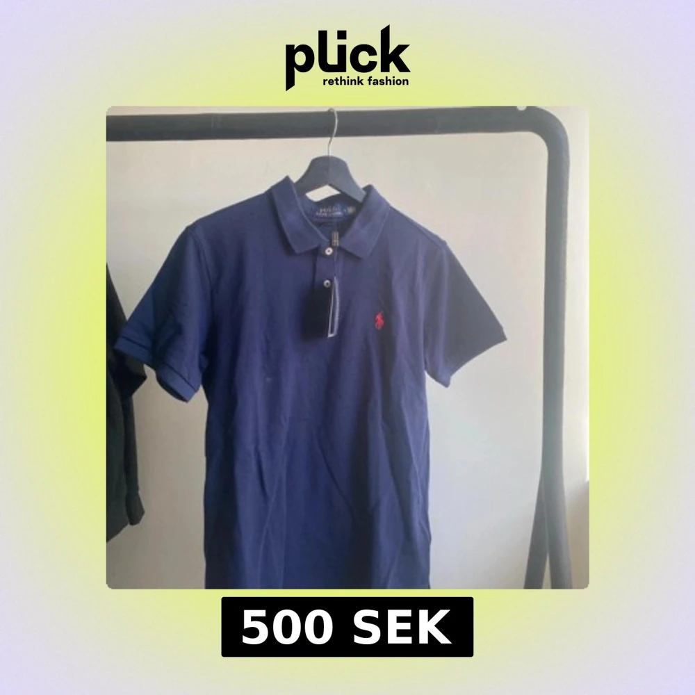 Säljer en klassisk blå pikétröja från Ralph Lauren med korta ärmar och den ikoniska röda loggan på bröstet. Perfekt för en stilren och avslappnad look. Tröjan har en krage och knappar framtill. Passar utmärkt till både jeans och chinos.