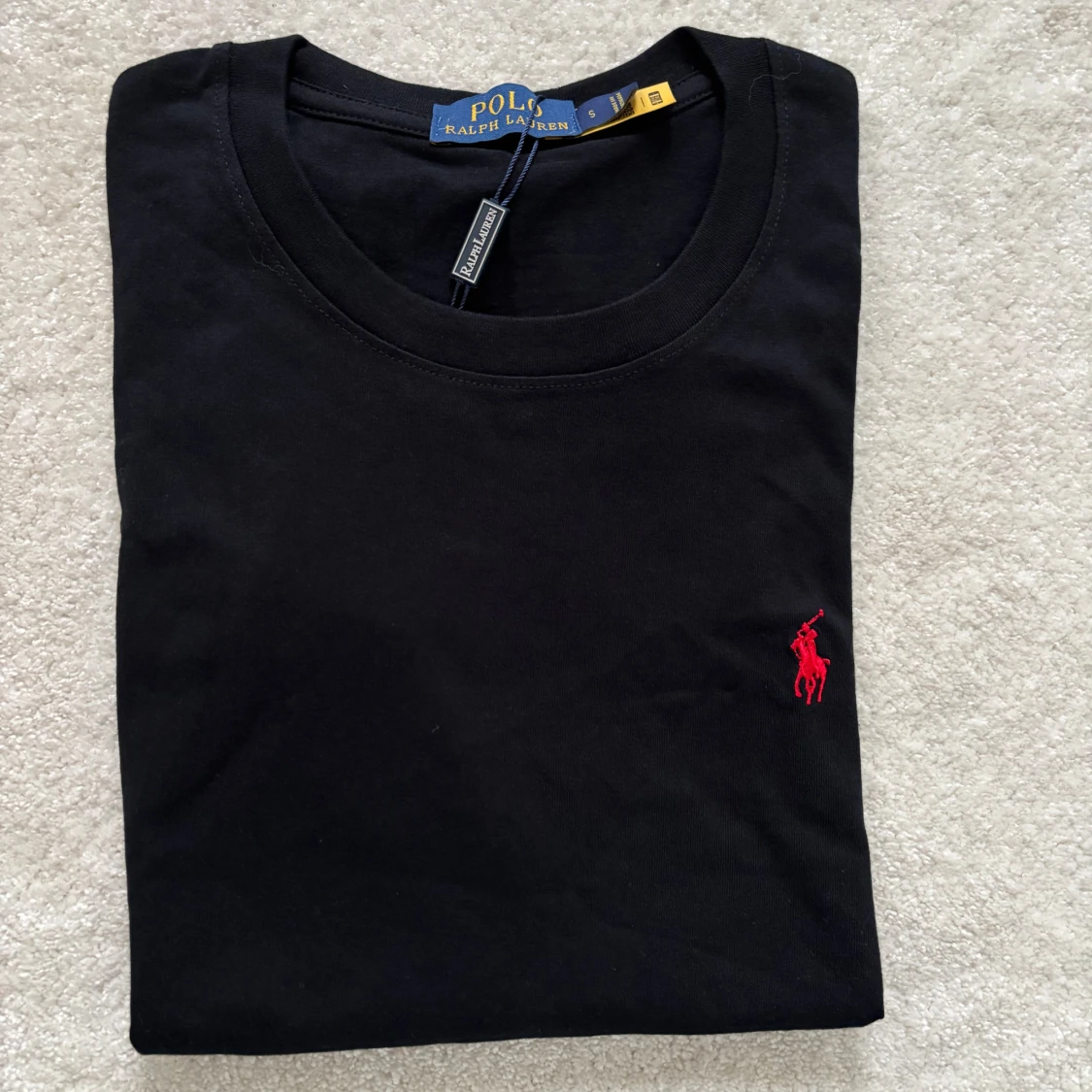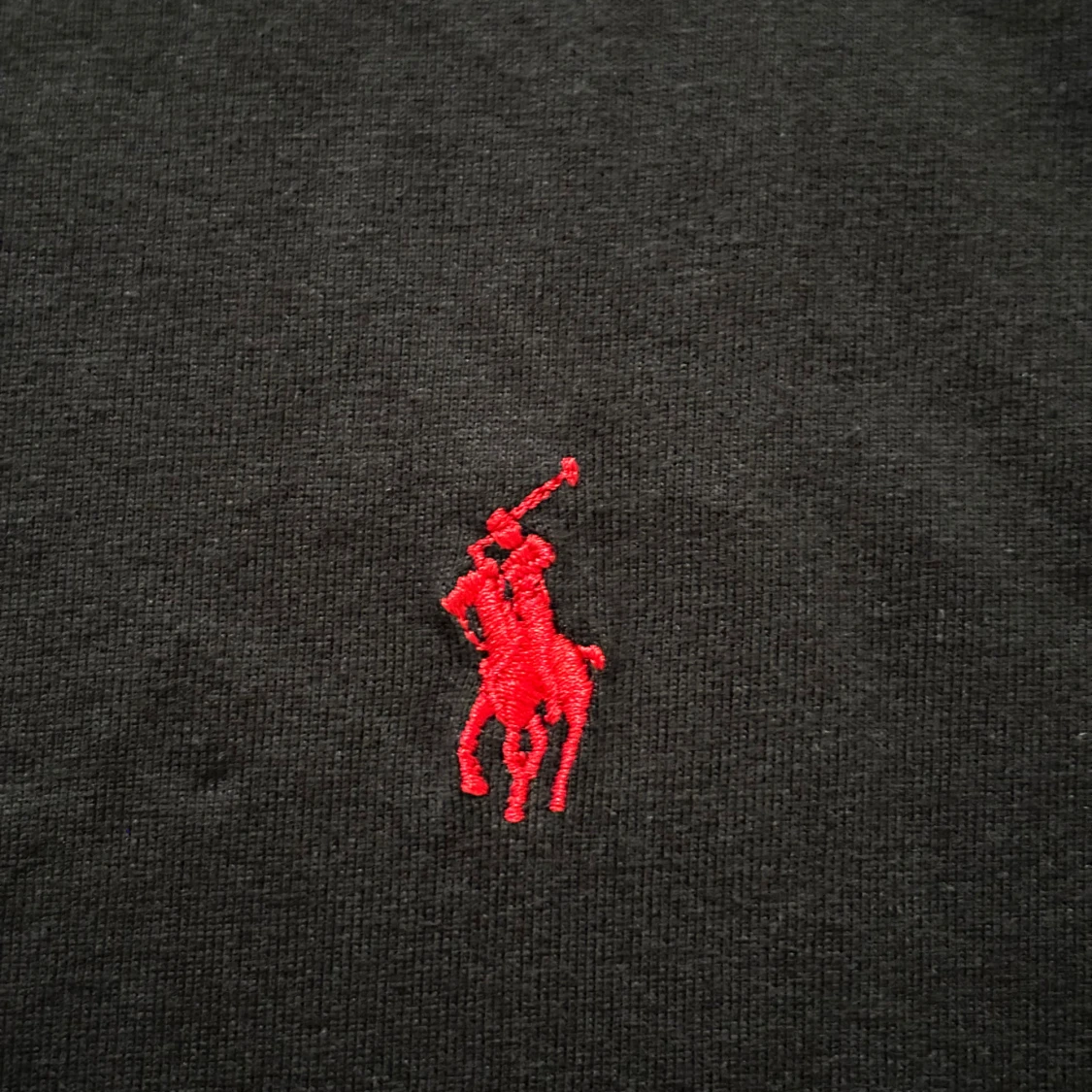 Svart t-shirt från Polo Ralph Lauren med klassisk rund hals och korta ärmar. På bröstet finns det ikoniska röda broderade Polo-logotypen. Tillverkad i mjuk bomull för skön komfort och stilren look.
