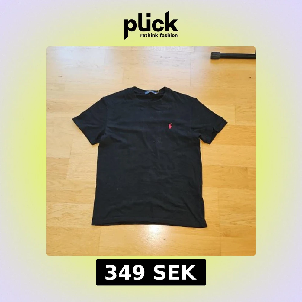 Svart t-shirt från Polo Ralph Lauren med klassisk rund hals och korta ärmar. På bröstet finns den ikoniska röda Polo-loggan broderad. T-shirten är gjord i mjuk bomull och har en clean, stilren look som funkar till jeans eller shorts.