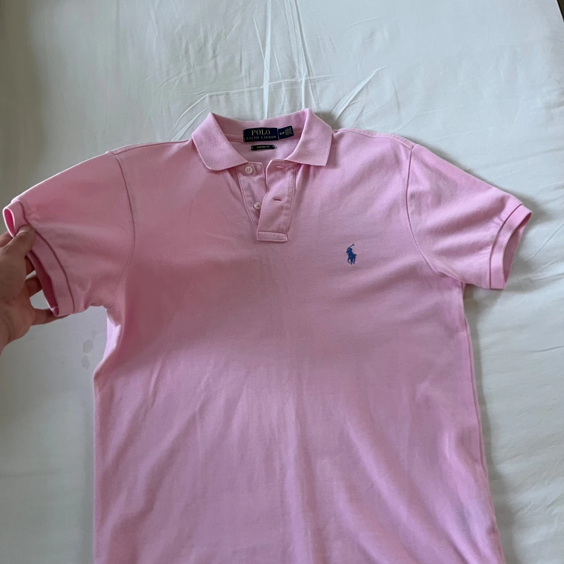 Riktigt snygg polo ralph lauren pike i den klassiska rosa färgen. Tröjan är i bra skick och ser bättre ut i verkligheten än på bilderna.
