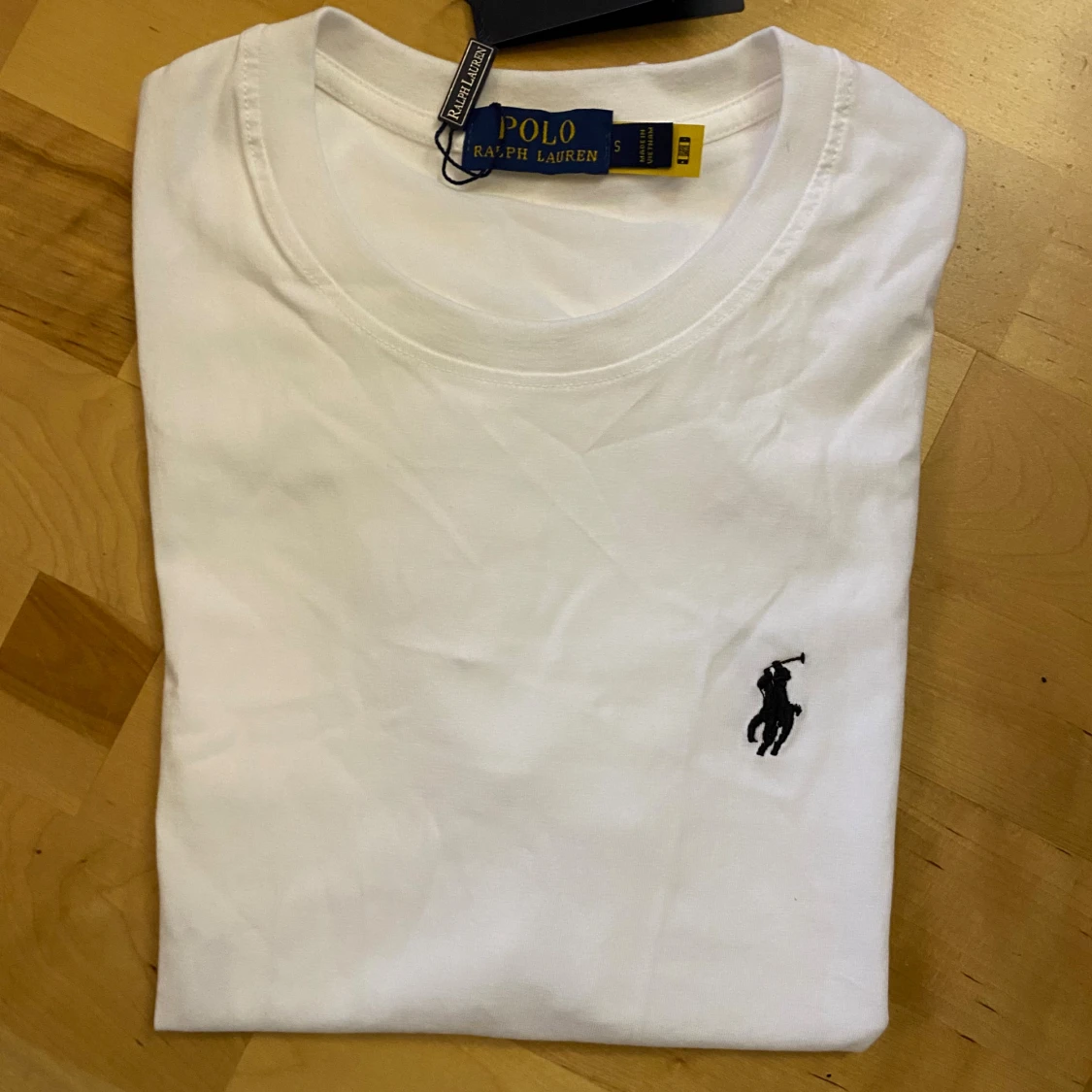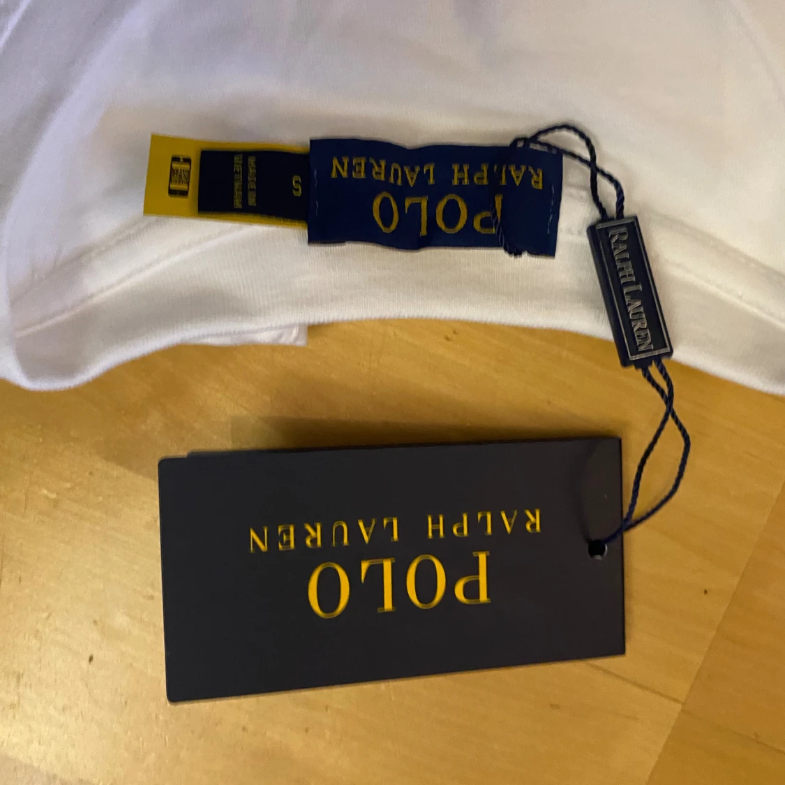 Snygg vit t-shirt från Polo Ralph Lauren med klassisk rund hals och ikoniska broderade loggan på bröstet. T-shirten är i mjuk bomull och har en normal passform med korta ärmar. Perfekt till jeans eller shorts för en clean och stilren look.