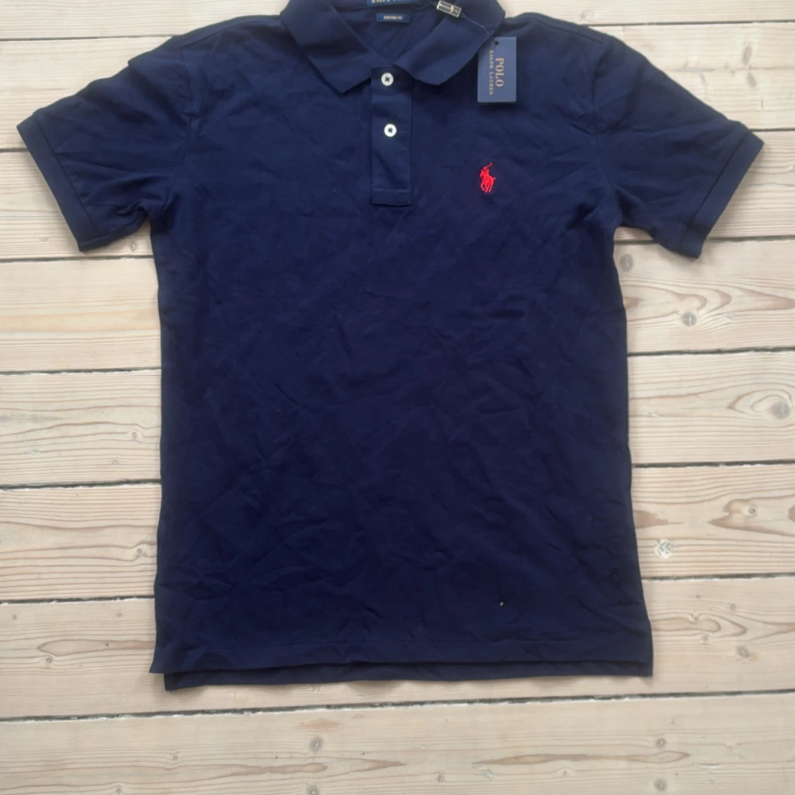 Snygg marinblå pikétröja från Polo Ralph Lauren med klassisk krage, korta ärmar och två knappar framtill. Ikoniska röda loggan broderad på bröstet. Tillverkad i bomull för en skön och stilren look.