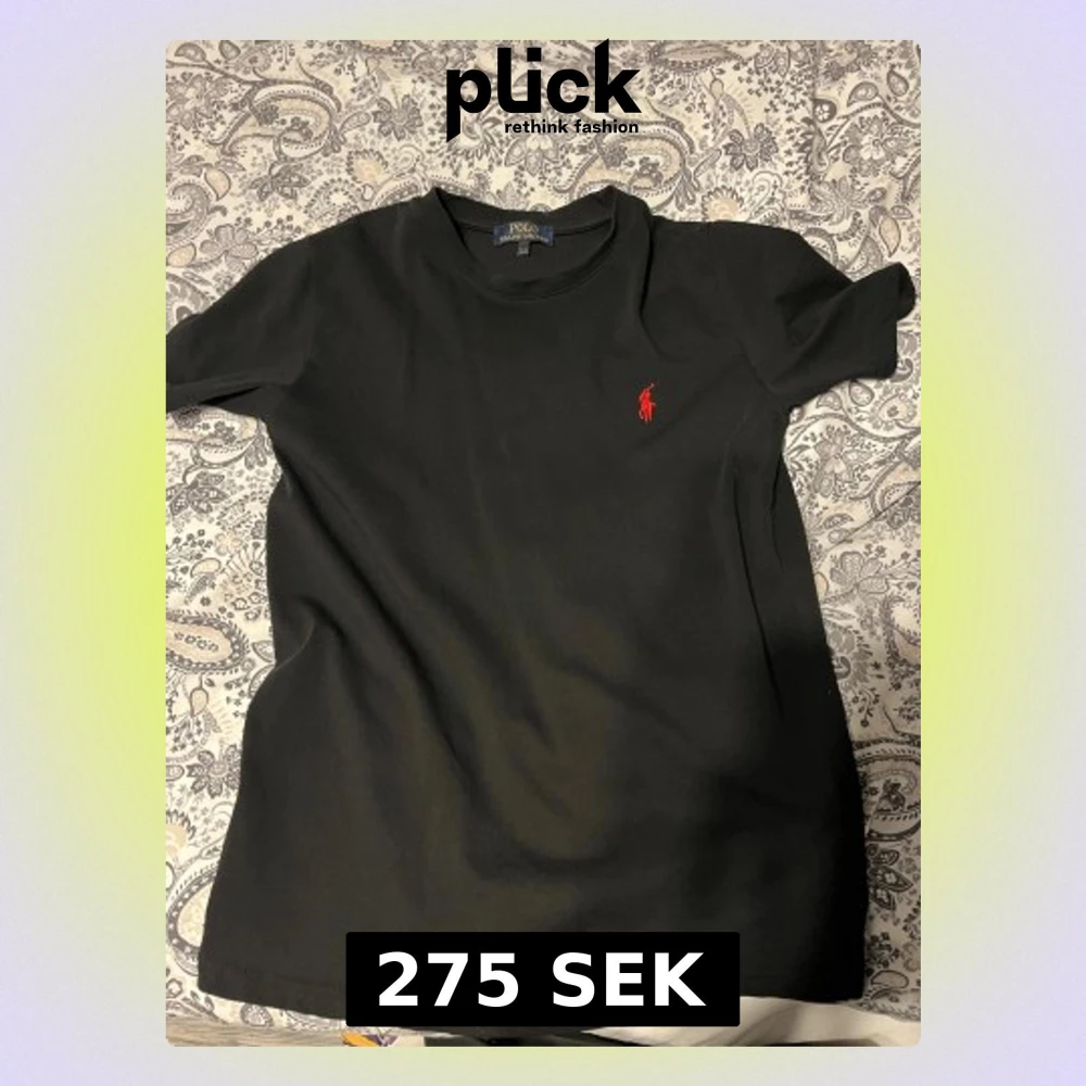 Svart t-shirt från Polo Ralph Lauren med klassisk röd logobroderi på bröstet. Modellen har rund hals och korta ärmar, tillverkad i mjuk bomull som känns skön mot huden. Enkel och stilren design som funkar till allt. Snygg passform och diskret branding. Pris kan diskuteras..