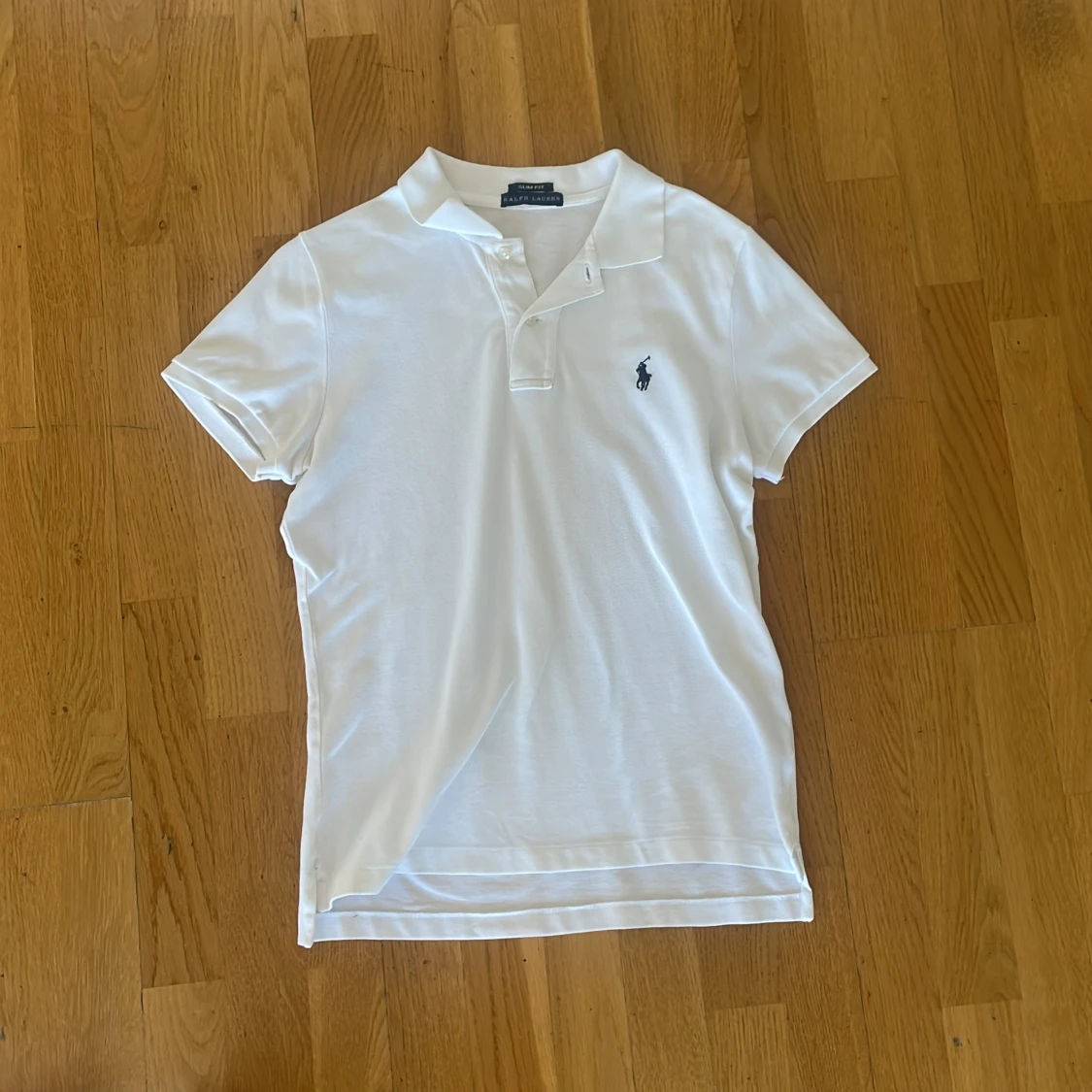 Klassisk vit piké t-shirt från Ralph Lauren med korta ärmar. Tröjan är i väldigt bra skick.