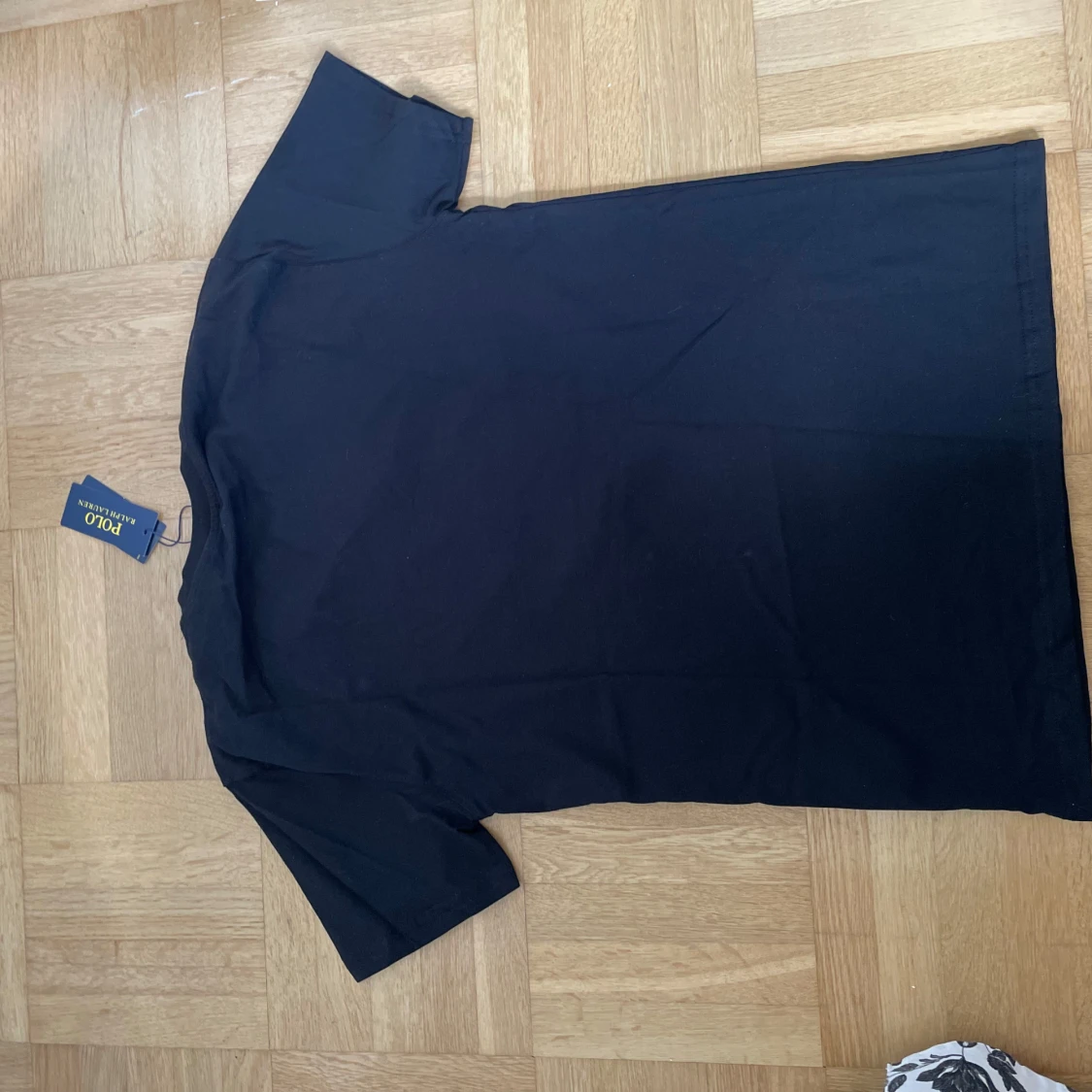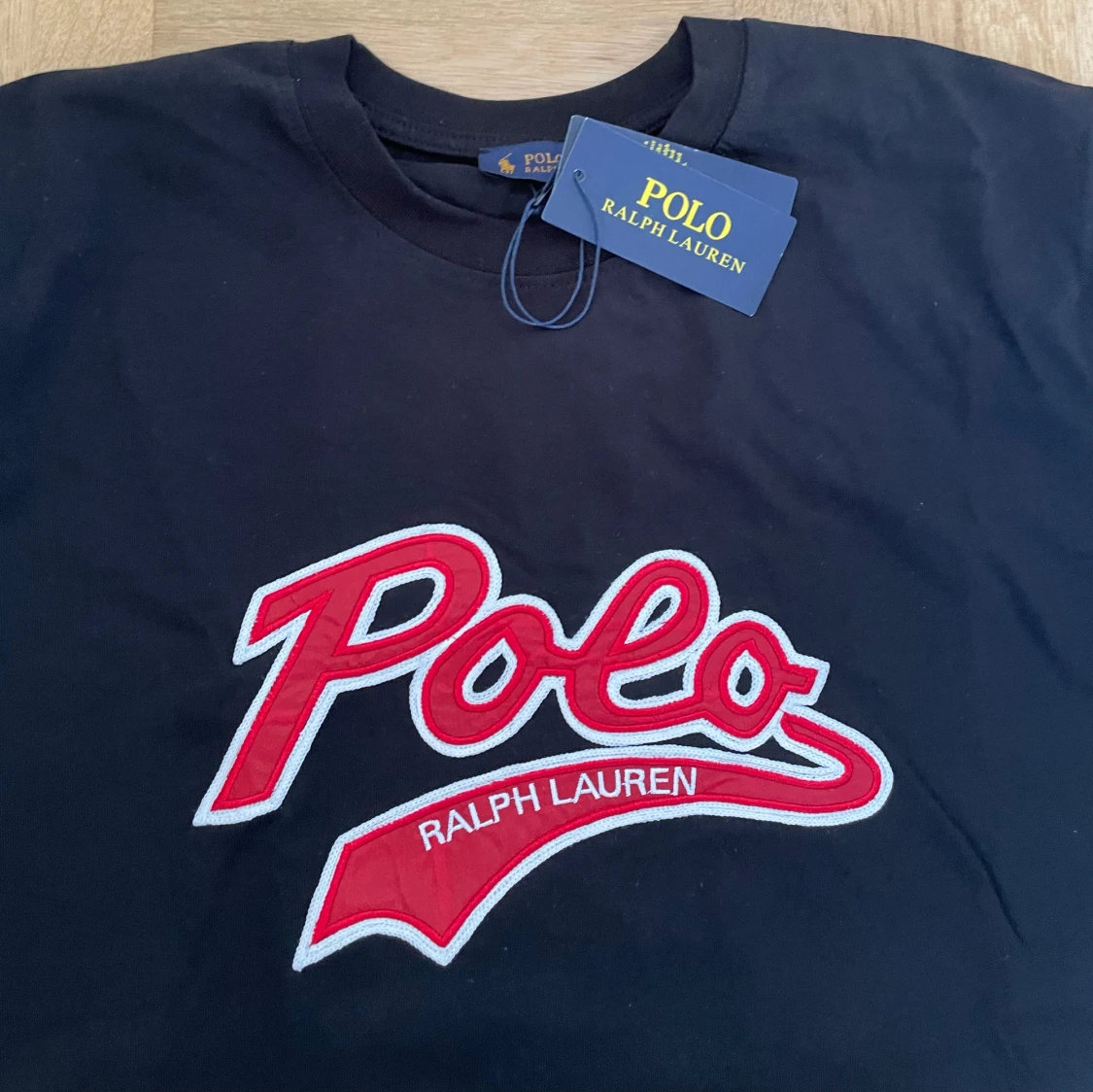 Svart t-shirt från Polo Ralph Lauren med stort broderat rött och vitt Polo-logo på bröstet. Klassisk passform med rund hals och korta ärmar. Helt ny aldrig använd. Kan gå ner i pris vid snabb försäljning