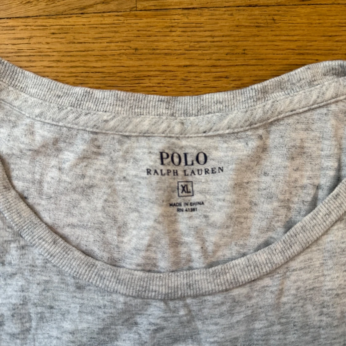 Snygg grå t-shirt från Polo Ralph Lauren i storlek XL. Klassisk modell med rund hals, korta ärmar och liten bröstficka med broderad logga. Tillverkad i mjuk bomull som är skön att ha på sig hela dagen.