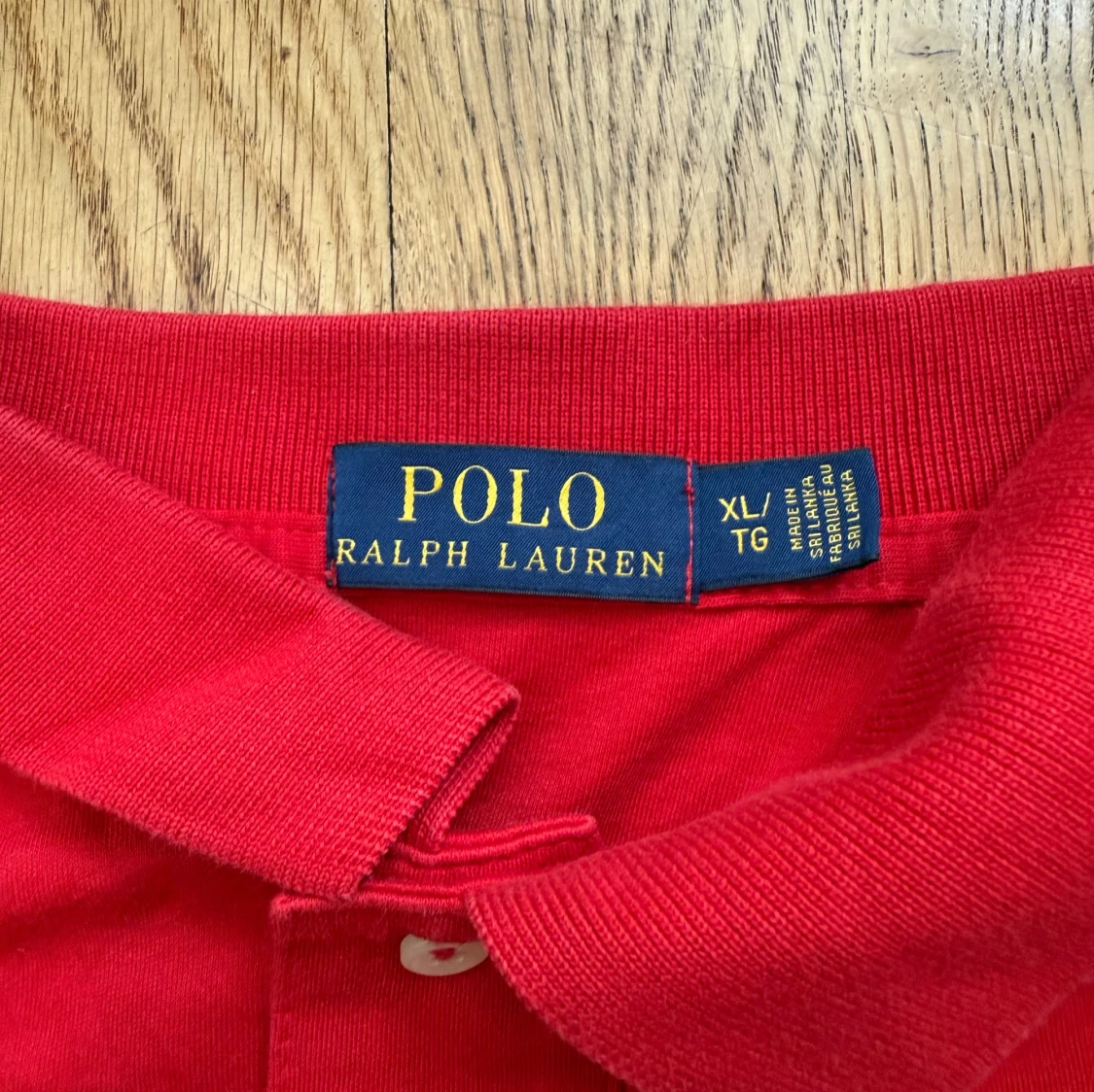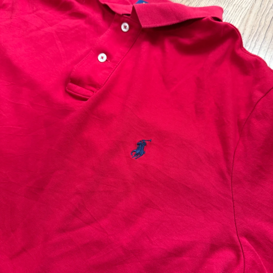 Klassisk röd pikétröja från Polo Ralph Lauren i bomull. Tröjan har korta ärmar, krage med två knappar och den ikoniska blå broderade loggan på bröstet. Perfekt för en clean och sportig stil.