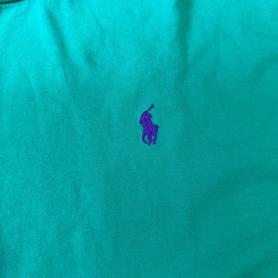 Fräsch grön t-shirt från Ralph Lauren med klassisk lila broderad logga på bröstet. T-shirten har rund halsringning och korta ärmar. Perfekt basic-plagg med snygg färg och skön bomullskänsla.