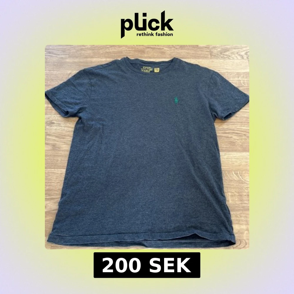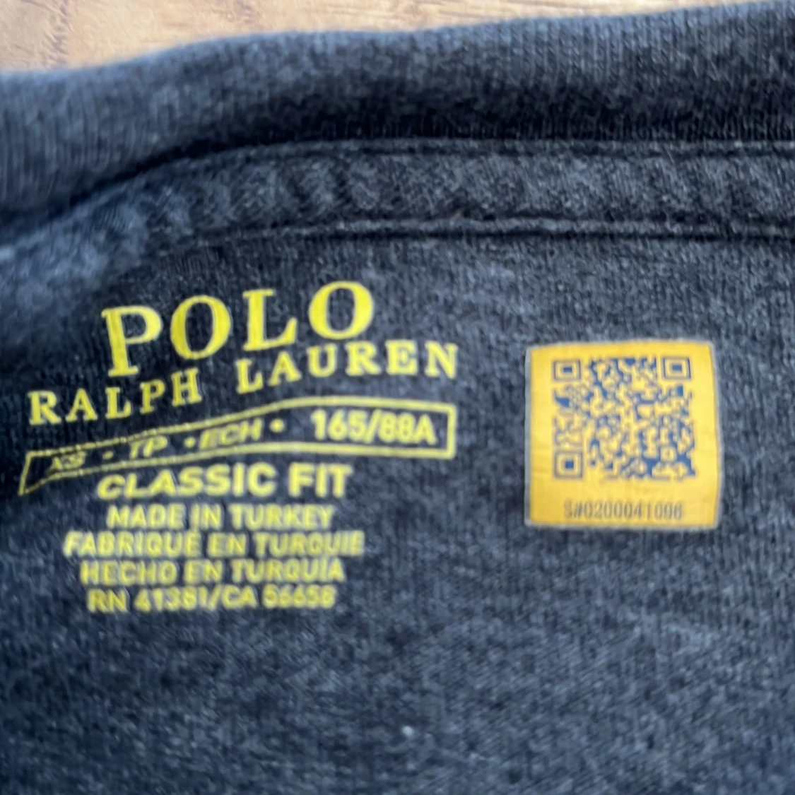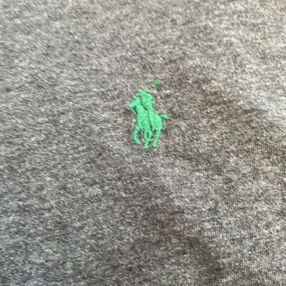 Säljer en mörkgrå t-shirt från Polo Ralph Lauren med klassisk passform. Den har en grön broderad logotyp på bröstet. Perfekt för en stilren och avslappnad look i gott skick. Använd enstaka gånger.