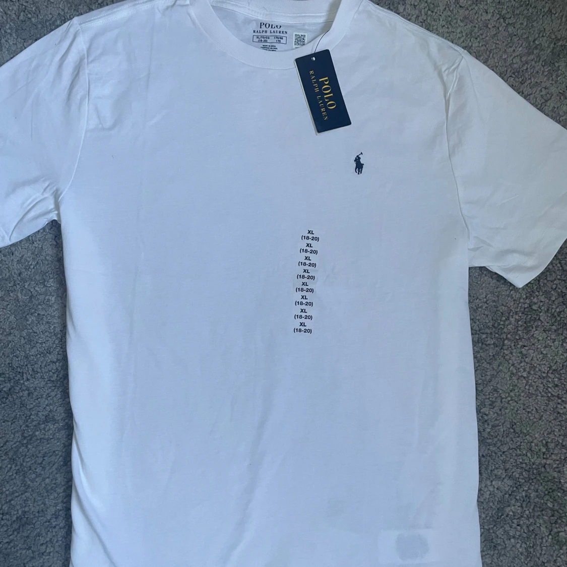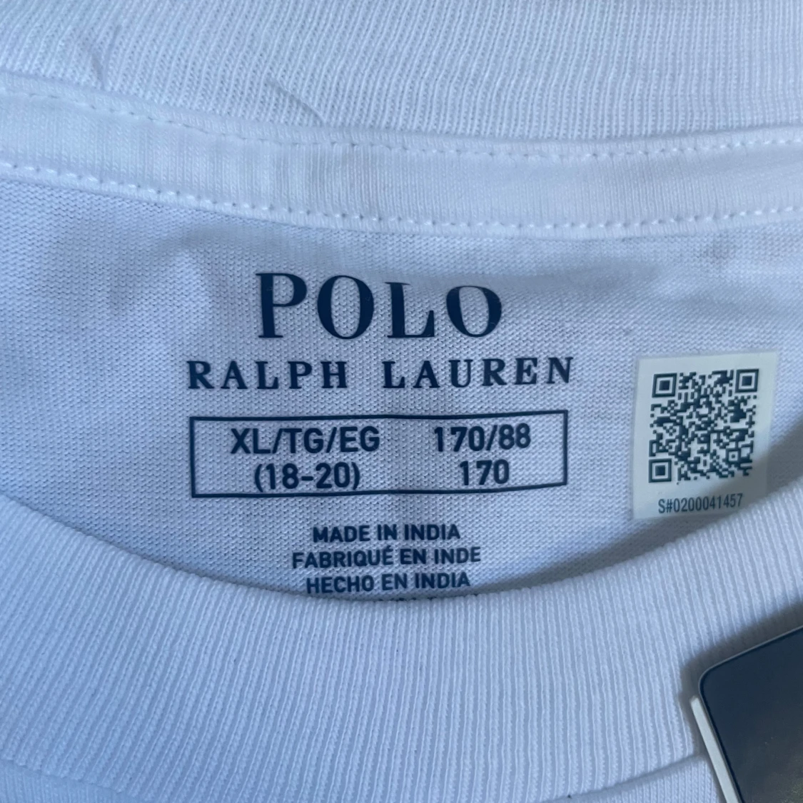 Vit klassisk t-shirt från Polo Ralph Lauren i storlek xl i barn storlek vilket motsvarar st 170. Tillverkad i mjuk bomull för en skön och clean look.