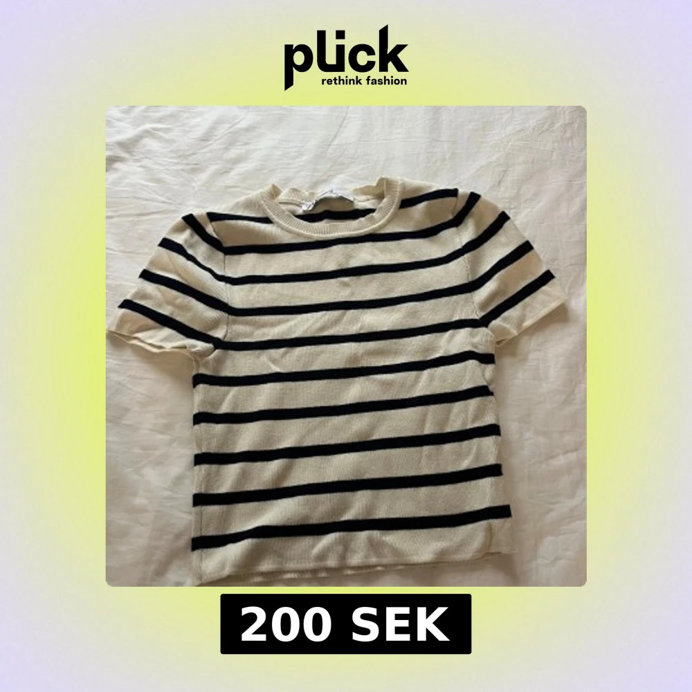 Snygg t-shirt med beige bas och svarta horisontella ränder. Klassisk rund halsringning och korta ärmar. Perfekt för en stilren och avslappnad look. Materialet känns mjukt och bekvämt mot huden.