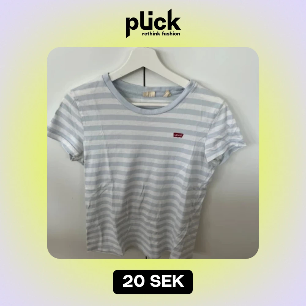 Jättefin randig t-shirt från levi’s. Fint skick, endast en liten fläck som tyvärr inte gått bort med vanlig tvätt men har ej provat något starkare medel (som säkert hade fått bort fläcken).Över lag väldigt fint skick, skönt material, passar till allt