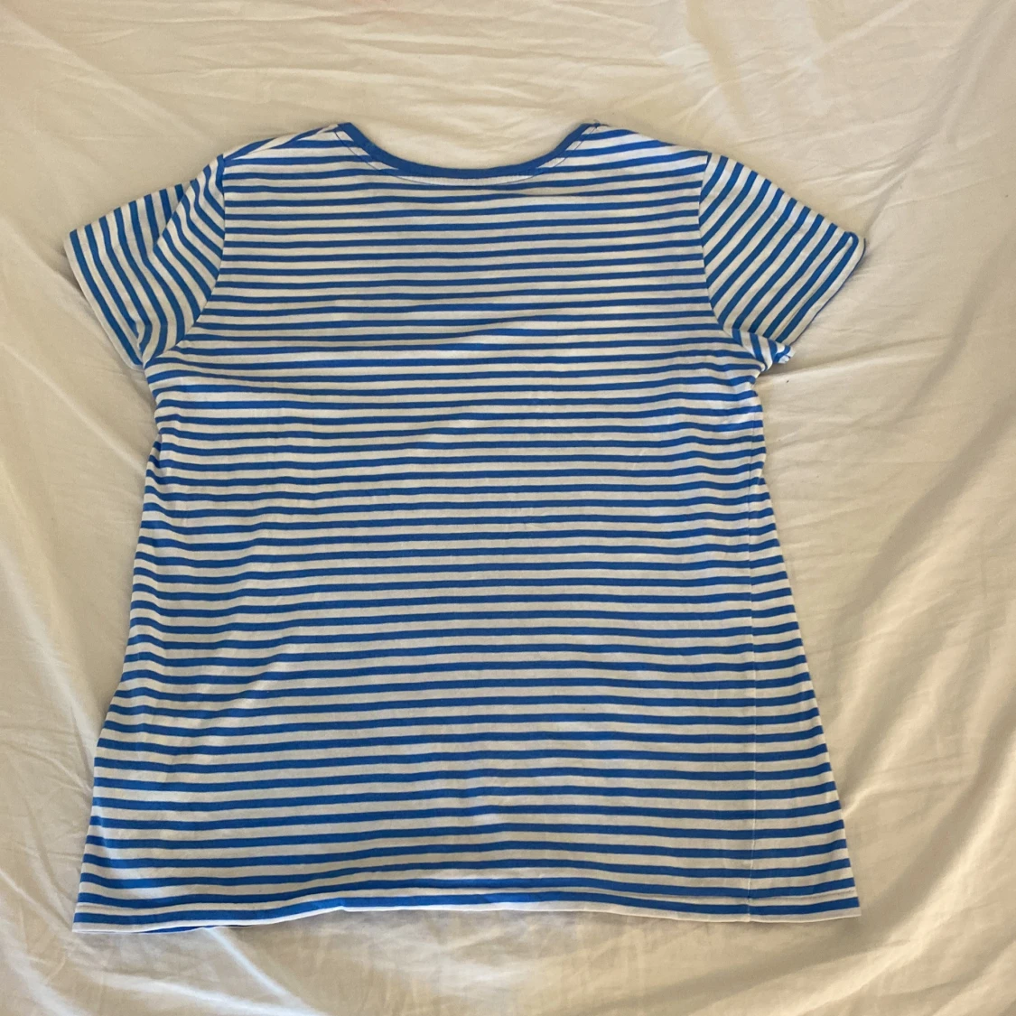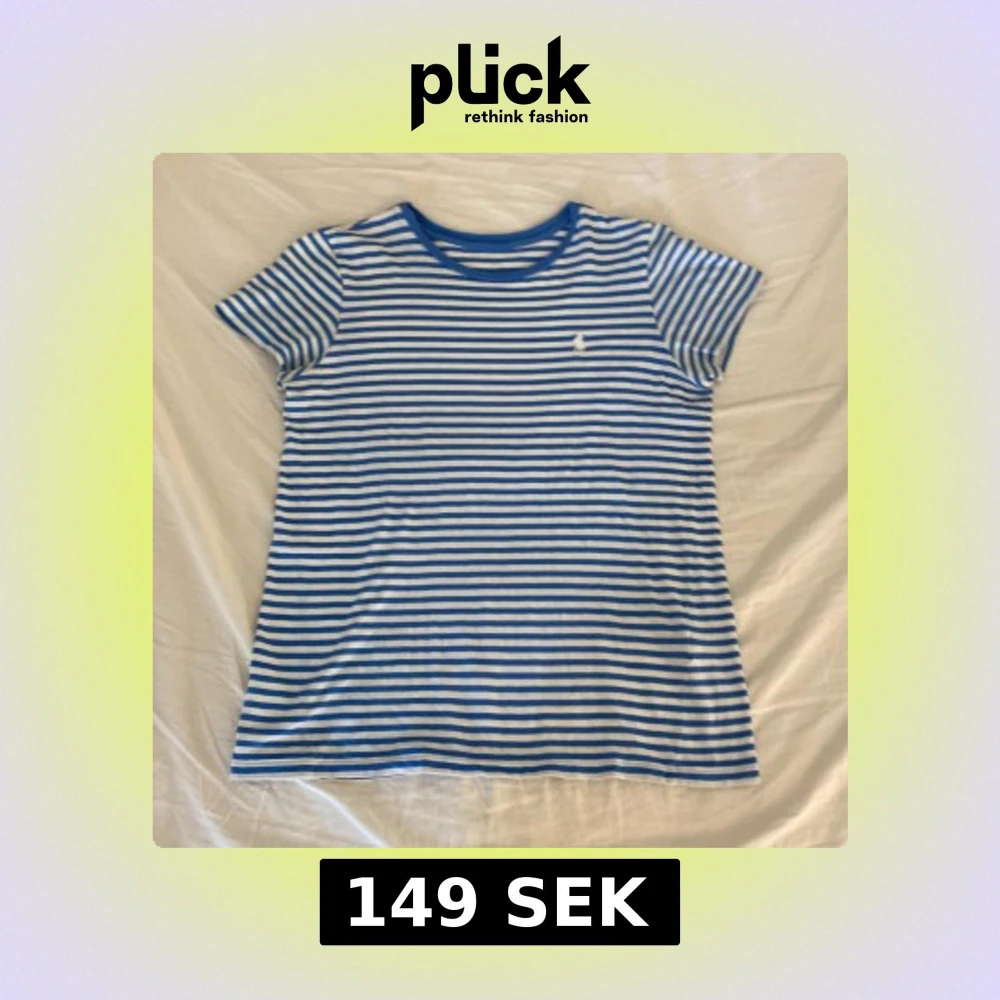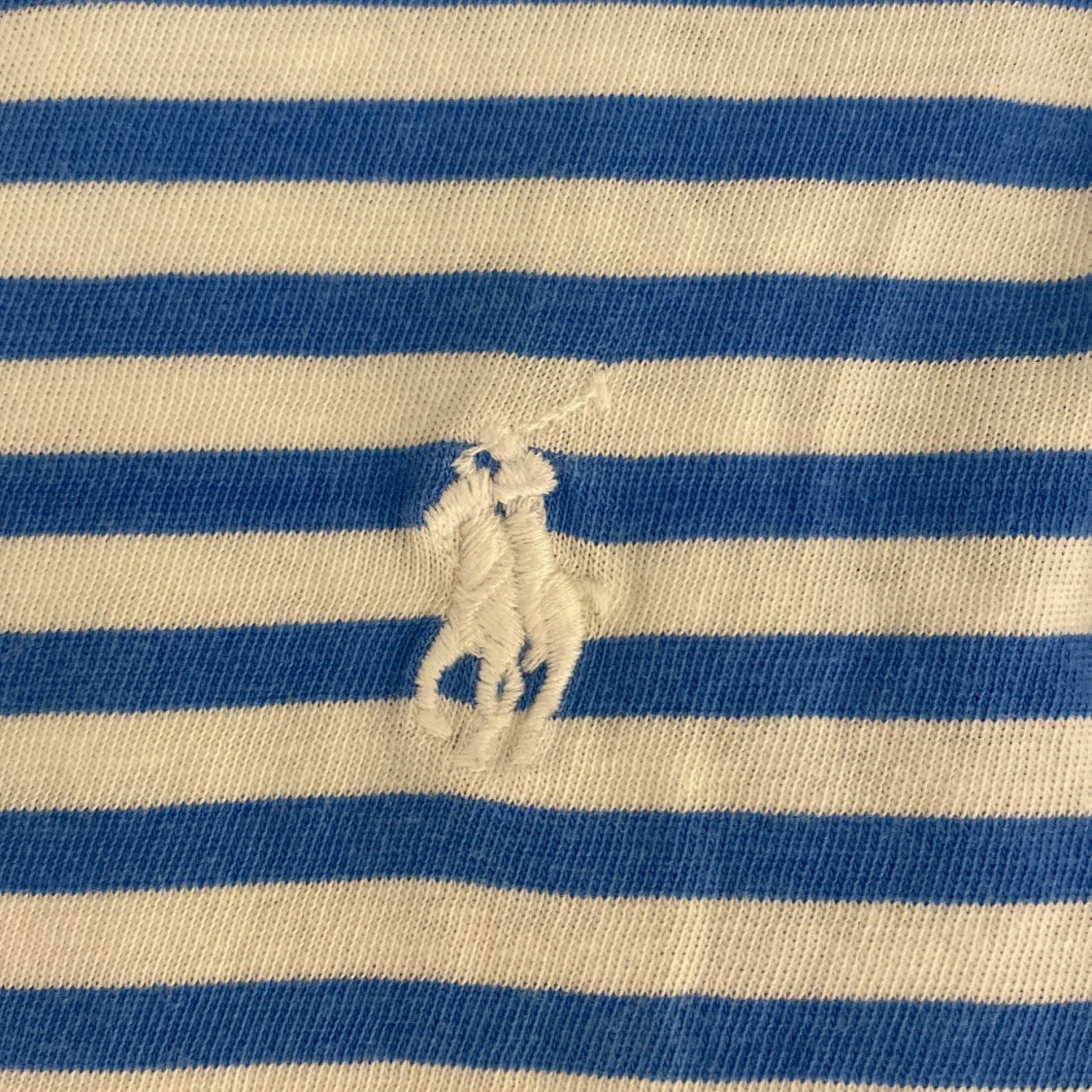 Blåvit randig t-shirt från Ralph Lauren med klassisk broderad logga på bröstet. T-shirten har rund halsringning och korta ärmar. Skön passform och tillverkad i mjuk bomull, perfekt för en chill look.storlek S-M💙🤍