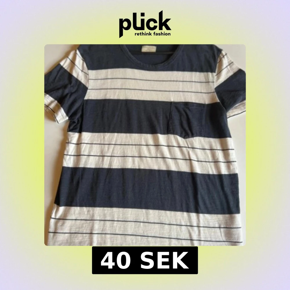 Snygg t-shirt från Selected Homme i marinblått och vitt med breda och smala ränder. Klassisk rund halsringning och en bröstficka på vänster sida. Tillverkad i mjuk bomull, perfekt för en avslappnad stil.