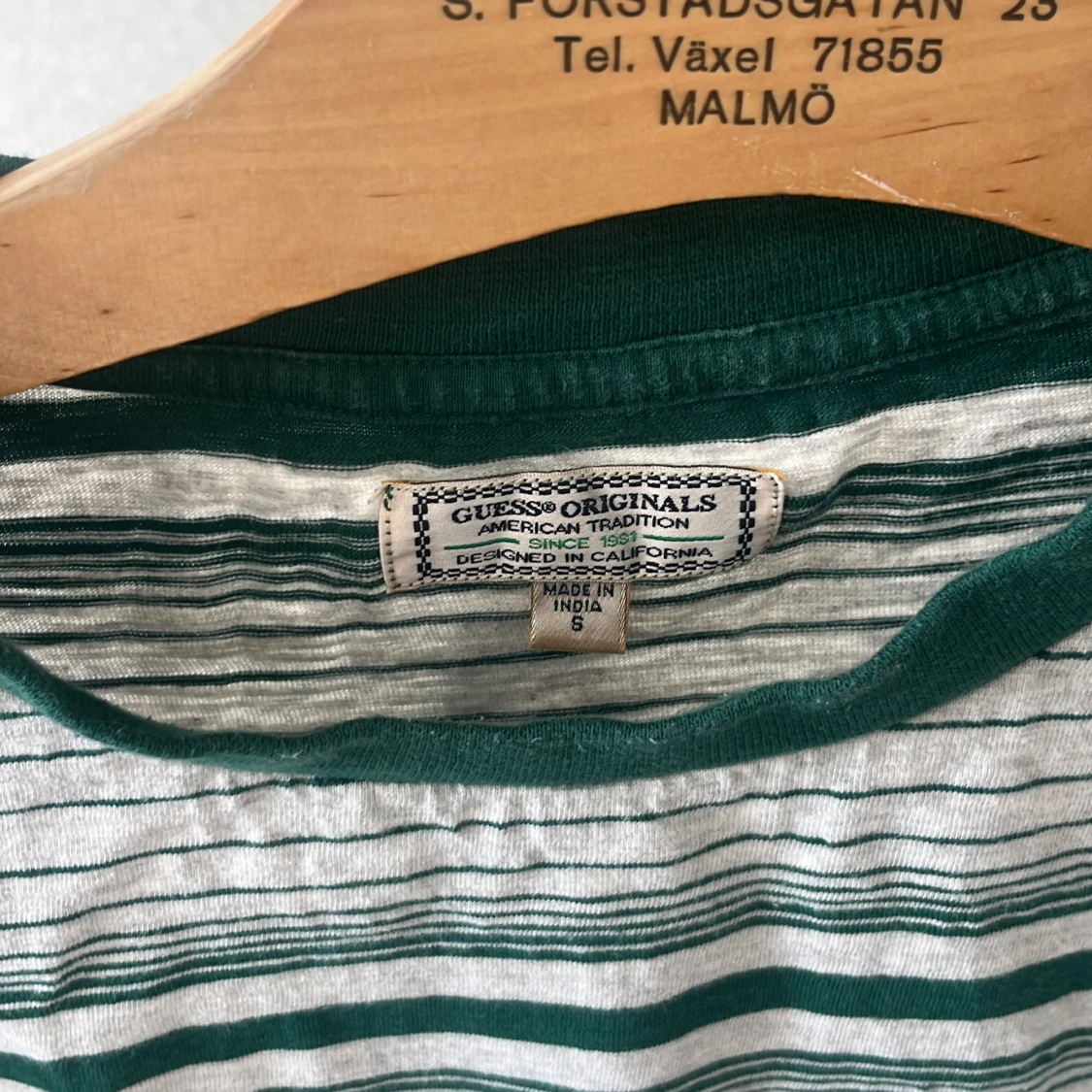 En randig T-Shirt i storlek small från märket guess. Väl använd men inget fel på tröjan i sig, fri från hål och fläckar osv.