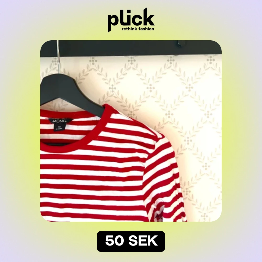 Randig tröja från monki. Sitter hyfsat nära kroppen för mig som oftast bär s/m, men bör få den lite ledigare looken för dig som bär xs.