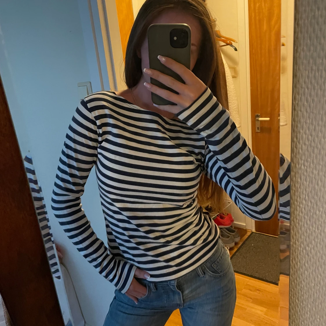 Snygg blå och vitrandig tröja i 100% bomull. Superskön och mjuk🫂🫂