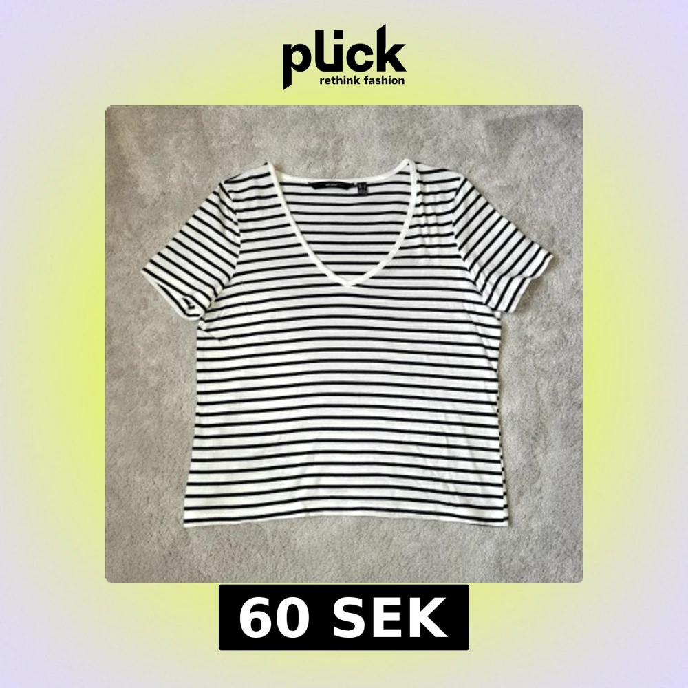 Vit t-shirt med svarta horisontella ränder från Vero Moda. T-shirten har v-ringning, är kroppad och har korta ärmar, perfekt för en avslappnad och stilren look.