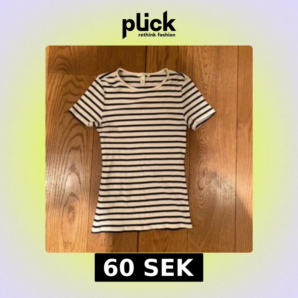 Snygg vit t-shirt med svarta horisontella ränder och rund hals. Modellen är klassisk med korta ärmar och en slim passform som sitter nära kroppen. Perfekt för dig som gillar enkel och stilren design.PRISET GÅR ATT DISSKUTERA